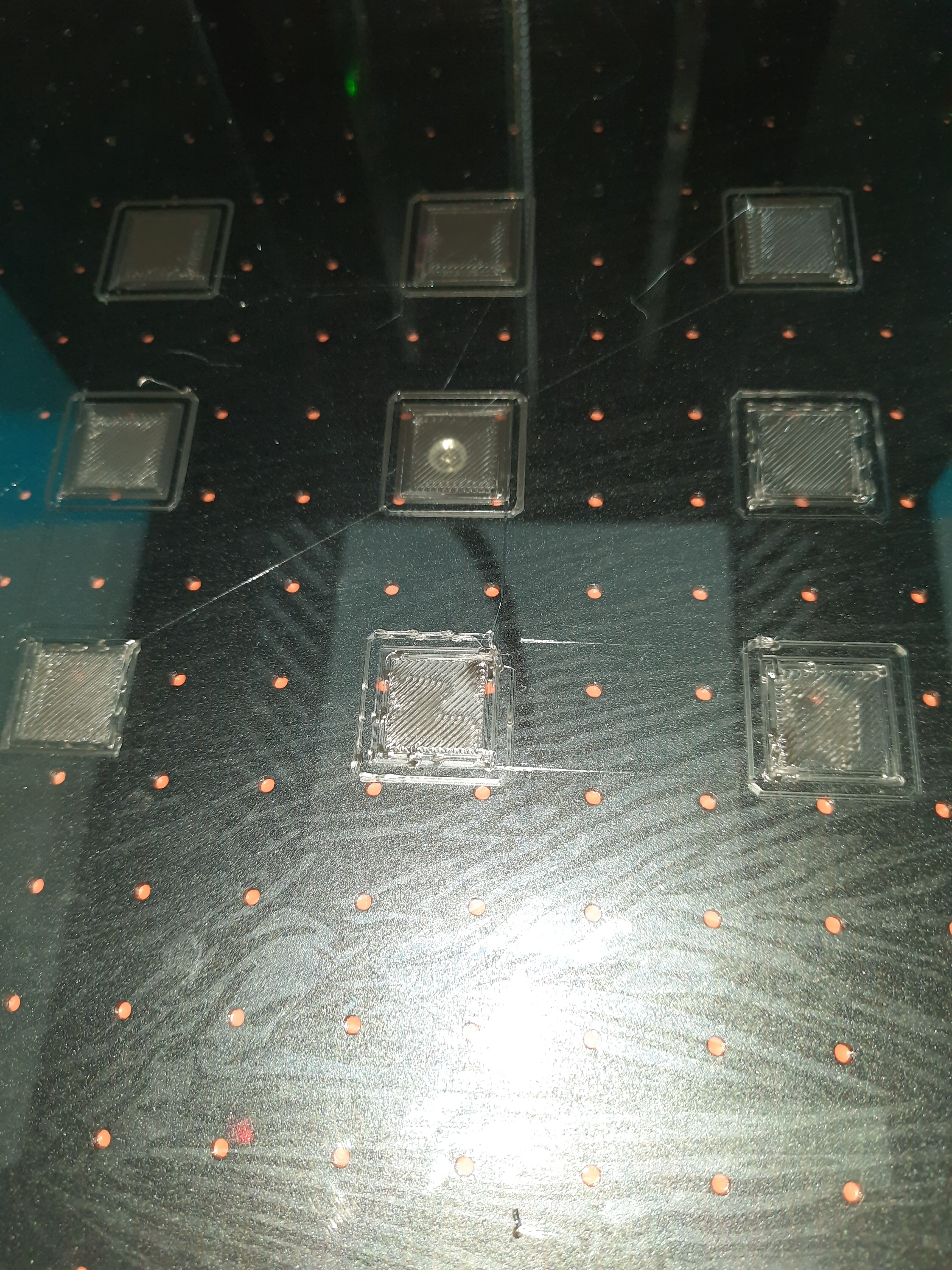 Где зазор побольше, дальше от края стола, слой лежит красивый, аккуратный, а по ближе к столу, сопло прям плющит первый слой.