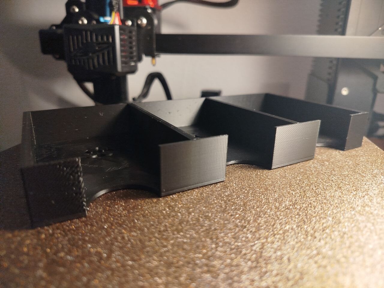 Добрый день, уважаемые! Столкнулся с такой проблемой при печати контейнера. Вся модель распечаталась хорошо, но одна стенка не пропечаталась. На вид сильные пропуски филамента в этом месте, при этом соседняя стенка пропечаталась отлично. Стенка тонкая, всего 3 слоя при 0.4 сопле. С чем это может быть связано?Печатаю PLA, сопло 0.4, тепм 220/50, поток 97%, скорость 40 (скорость печати стенок 32), ретрак 5.Мне нужно распечатать еще 2 таких контейнера. Хотелось бы решить эту проблему, при печати следующих. И как-нибудь исправить этот, а то как затратно перепечатывать (хочу попробовать отдельно эту стенку напечатать и вклеить).