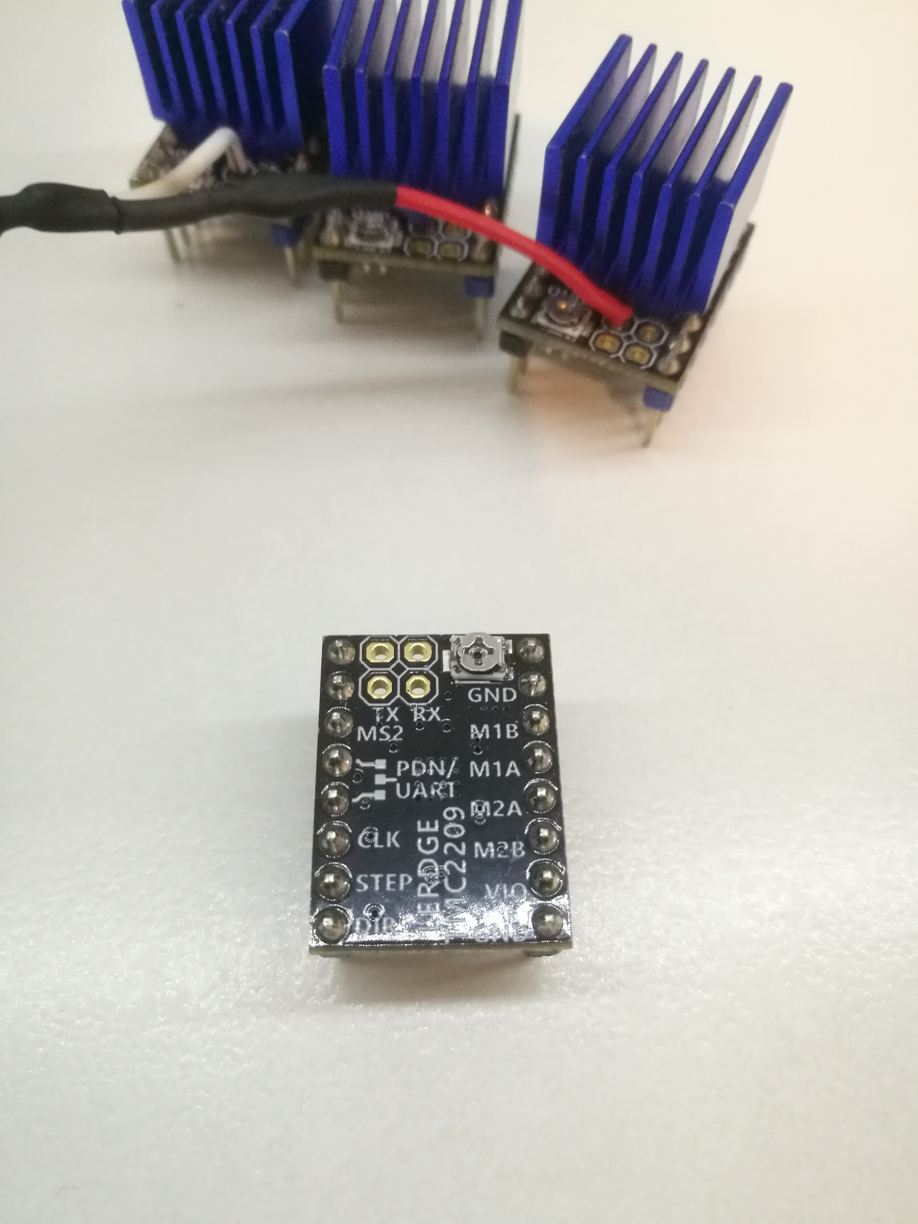 Есть плата Lerdge-Z с драйверами TMC2209 (Lerdge V1). Начал напрягать шум от работы моторов. Пока печатал относительно маленькие детальки шум был терпимый. Но сейчас практически постоянно печатаю большие цилиндрические детали и движки воют так, что слышно во всей квартире. Решил перевести их в режим stealthChop. Но Lerdge-Z не поддерживает управление по UART из коробки. Пришлось колхозить. Объединил все пины RX на драйверах в один провод.