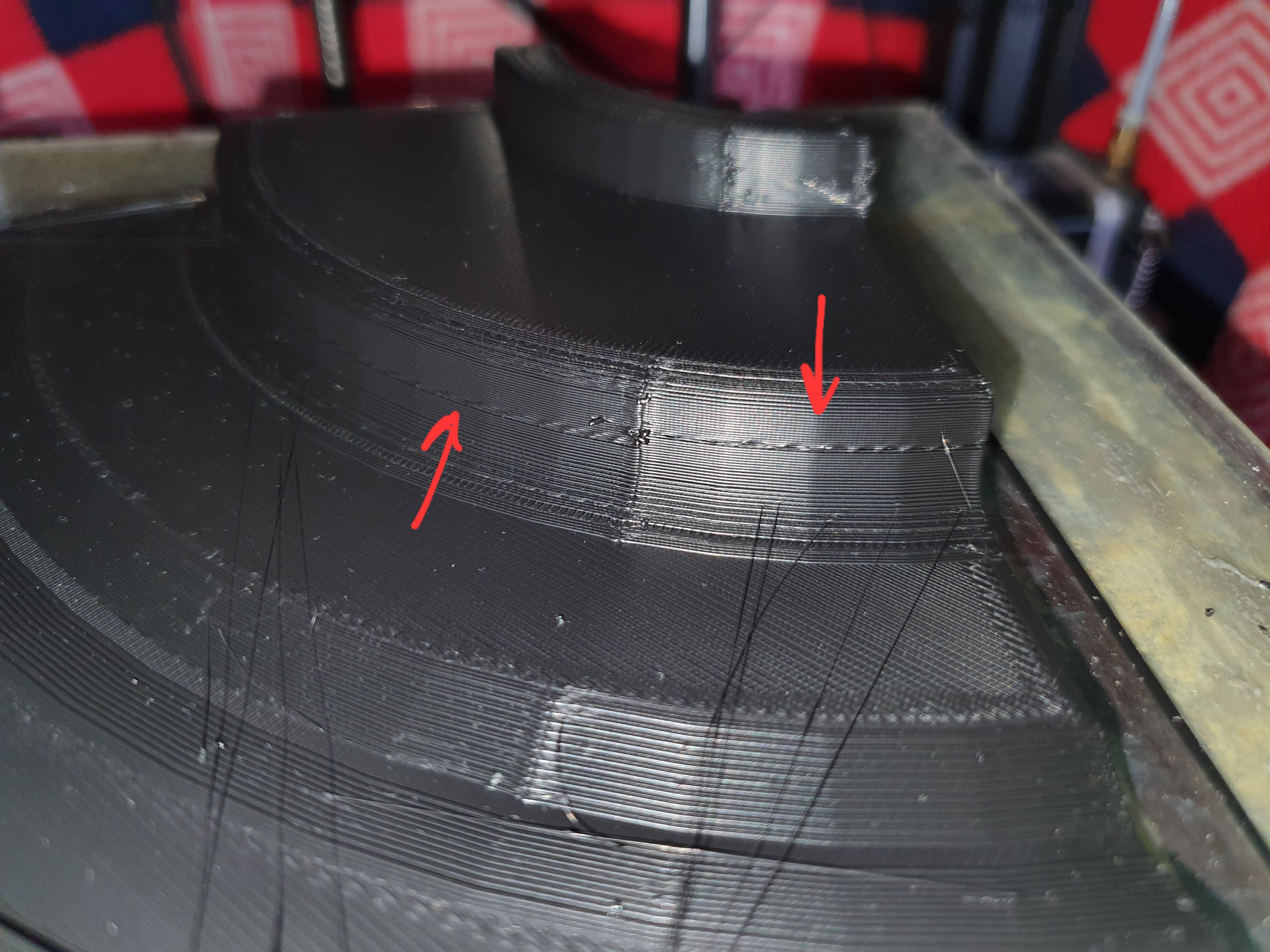 Никак не могу побороть дефект при печати. В одном и том же месте образуется какая-то недоэкструзия. Причём не помогает изменение ретракта, дозаполнения пластиком после ретракта, увеличение/уменьшение температуры, скорости и потока филамента. Каждый раз в одном и том же месте она одинаковой длины. Причём для каждой модели свой слой, на котором такое происходит, и положение не меняется. Единственное, что заметил: если размножить одну модель, то пара штук будут нормальные, а остальные с дефектом в разных местах.