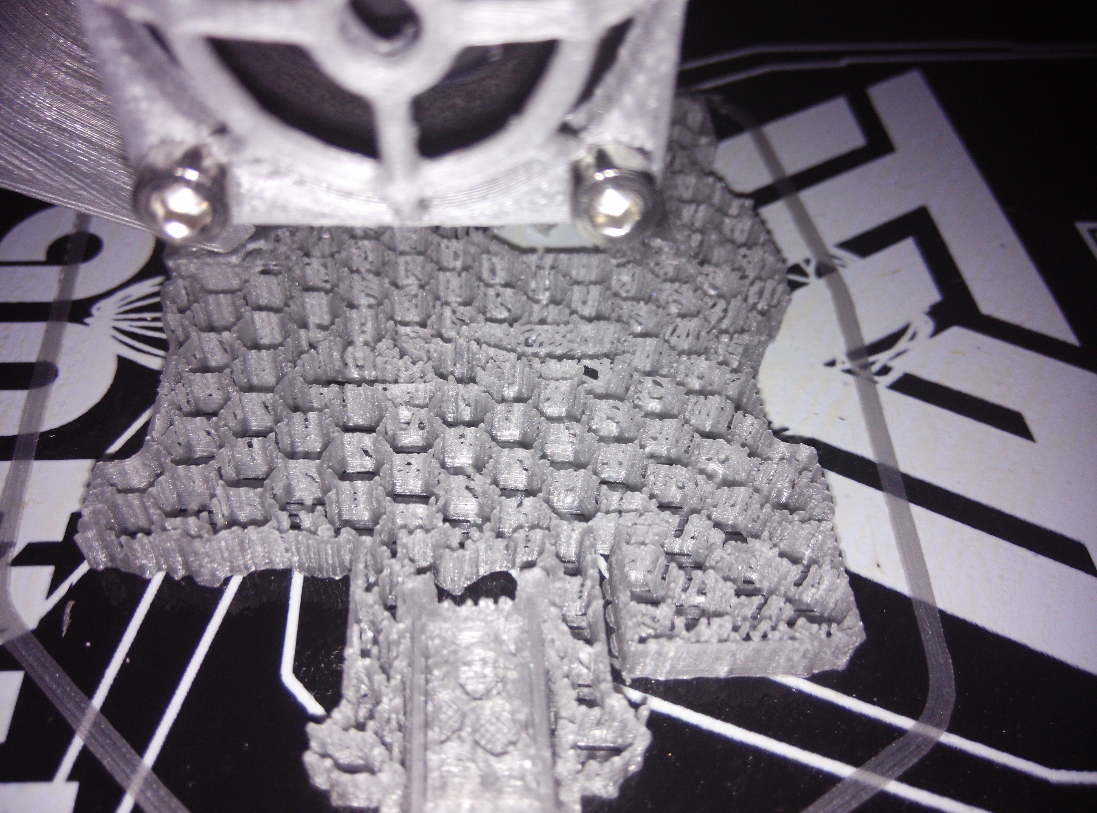 Вместо ровного, тонкого/хрупкого слоя выходит банальная недоэкструзия. Недавно я уже задавал вопрос по этой теме (http://3dtoday.ru/questions/the-problem-with-netextreme/), но тогда у меня не было обдува. Сейчас и вертушка стоит, и настройки подкручены, однако проблема не ушла.(уже выкрутил толщину слоя подпорок на 225%, однако всё равно...)