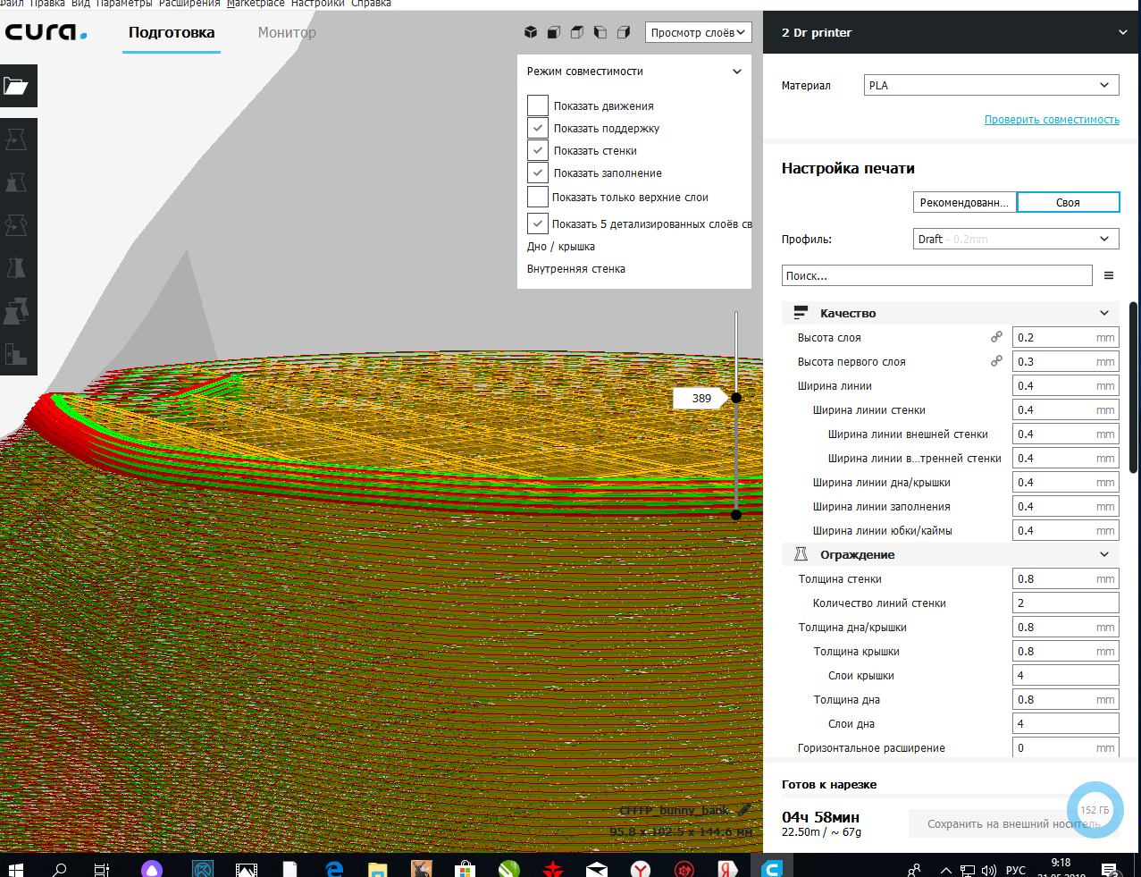 Подскажите в чем причина некорректного отображения слоев, и нет прокрутки наложения слоя головкой сопла. (Ни одна из версий 3.2, 3.6, 4.0, 4.1 не решило проблему)
