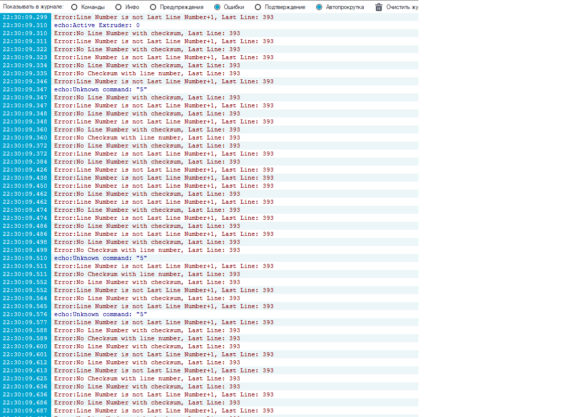 Никто не знает из-за чего может вылезать эта ошибка когда должна начаться печать? Прогревается, но не печатает, с компа все хорошо шевелится и домой спокойно возвращается.