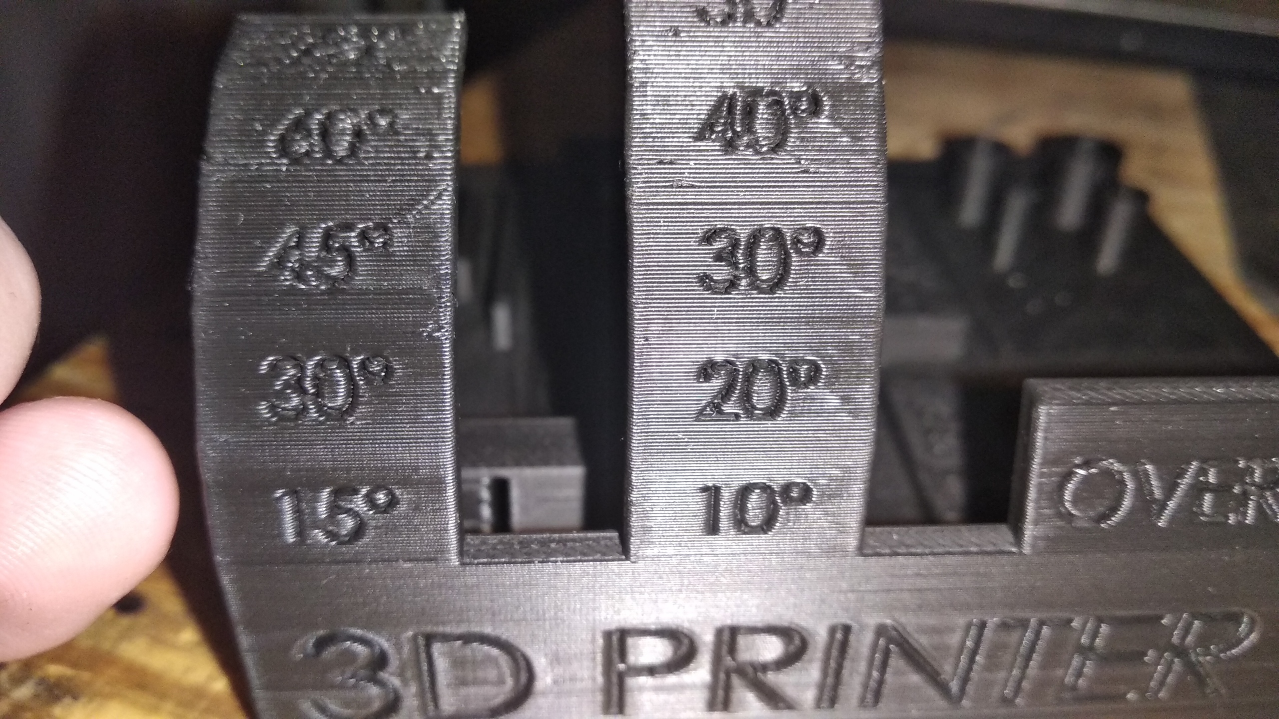 Печатал тестовую модель на нависания, всё идеально вплоть до 30-40 градусов,дальше нормально но постепенно качество падает. Так вот когда печатаю например игральную кость, её углы при печати оттопыриваются вверх, и проиходит то, что на фотографии. Почему так - не пойму, пытался печатать и на холодном столпе при максимальном обдуве, и наоборот, и быстро и медленно и разными скоростями и всё едино. При том есть чёткая граница на игральной кости, после которой всё идёт как по маслу. Другие модели печатаются идеально, например печатал блесну для спининга, там ещё более крутой подъём, и такого на ней не наблюдал. Печатаю штатным креалити слайсером, может в нём проблема?