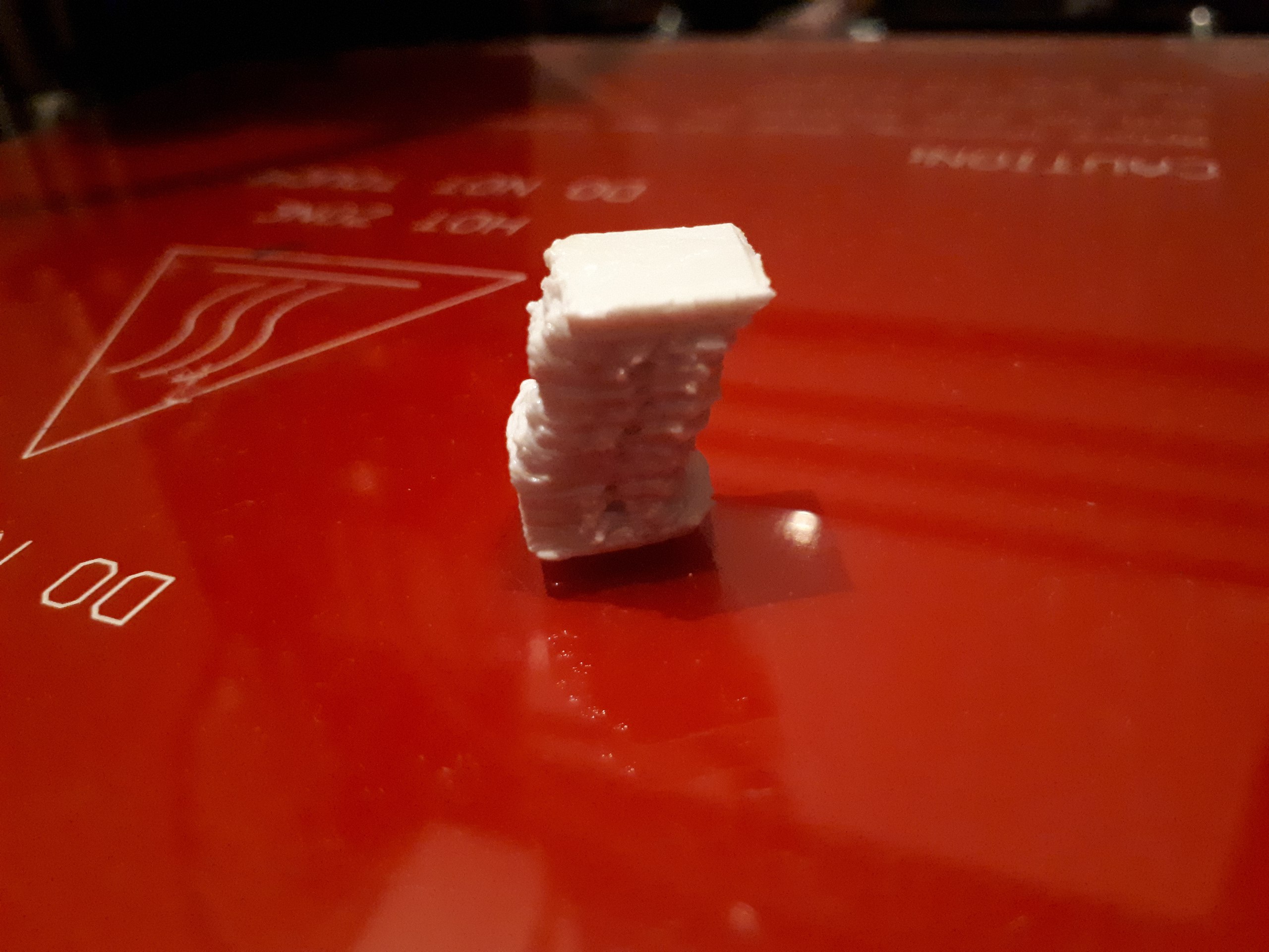 Но вот на новом месте не прижился, неделю стоял спокойно, осваивался. А на выходных при печати показал свой характер:А вот после небольшой проверки механики:Смещение слоёв ушло, это хорошо, но сама печать довольно небрежная, в сравнении с ранними работами просто ужасная.