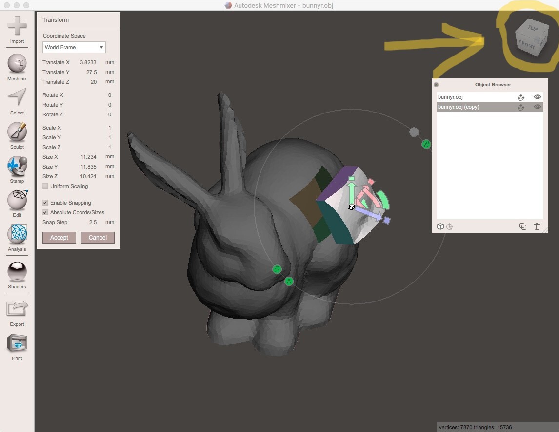 НУЖНА ПОМОЩЬ!!!Как включить куб ориентации в meshmixer