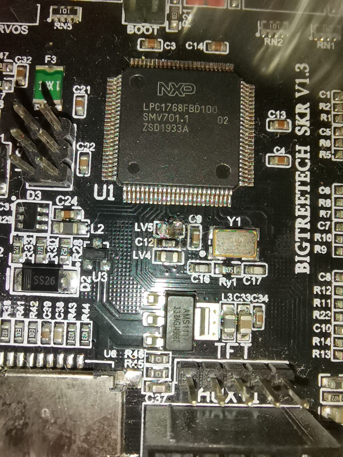 Приветствую, сегодня приказала долго жить плата. Возможно кто сталкивался с таким, я в электронике не особо, в том смысле что схемы читать могу, а что куда и от куда идёт сложновато, на плате сгорел элемент LV5, и плюс наверно контроллеру конец, схему в гугле нашёл только на skr 1.1 часть схемы. Это я так понимаю подтягивание "-" 3,3 В к контроллеру. Это получается пробило c12, или я ошибаюсь, возможно где то КЗ по линии термисторов, или что то ещё. С таким столкнулся первый раз, думаю прежде чем новый контроллер впаивать, или плату менять, хочется узнать причину.