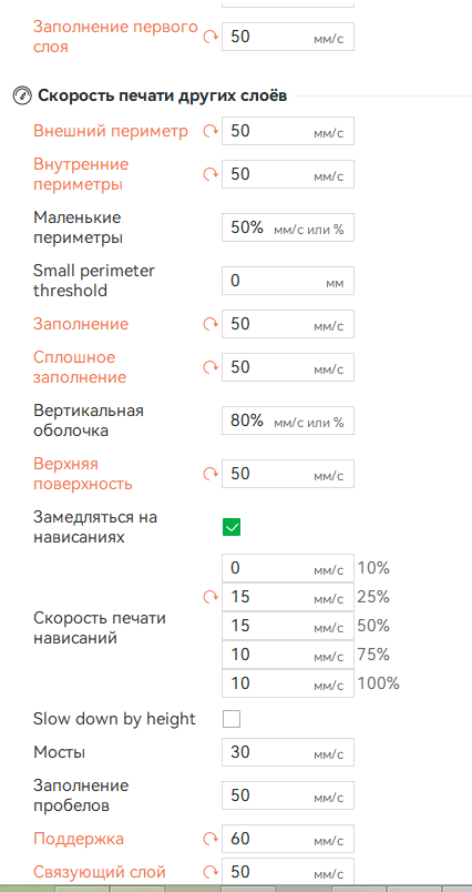 Принтер P1S, камера нагрета до 65 градусов, температура сопла 300 градусов, все откалибровано. Настройки прикрепил на фото