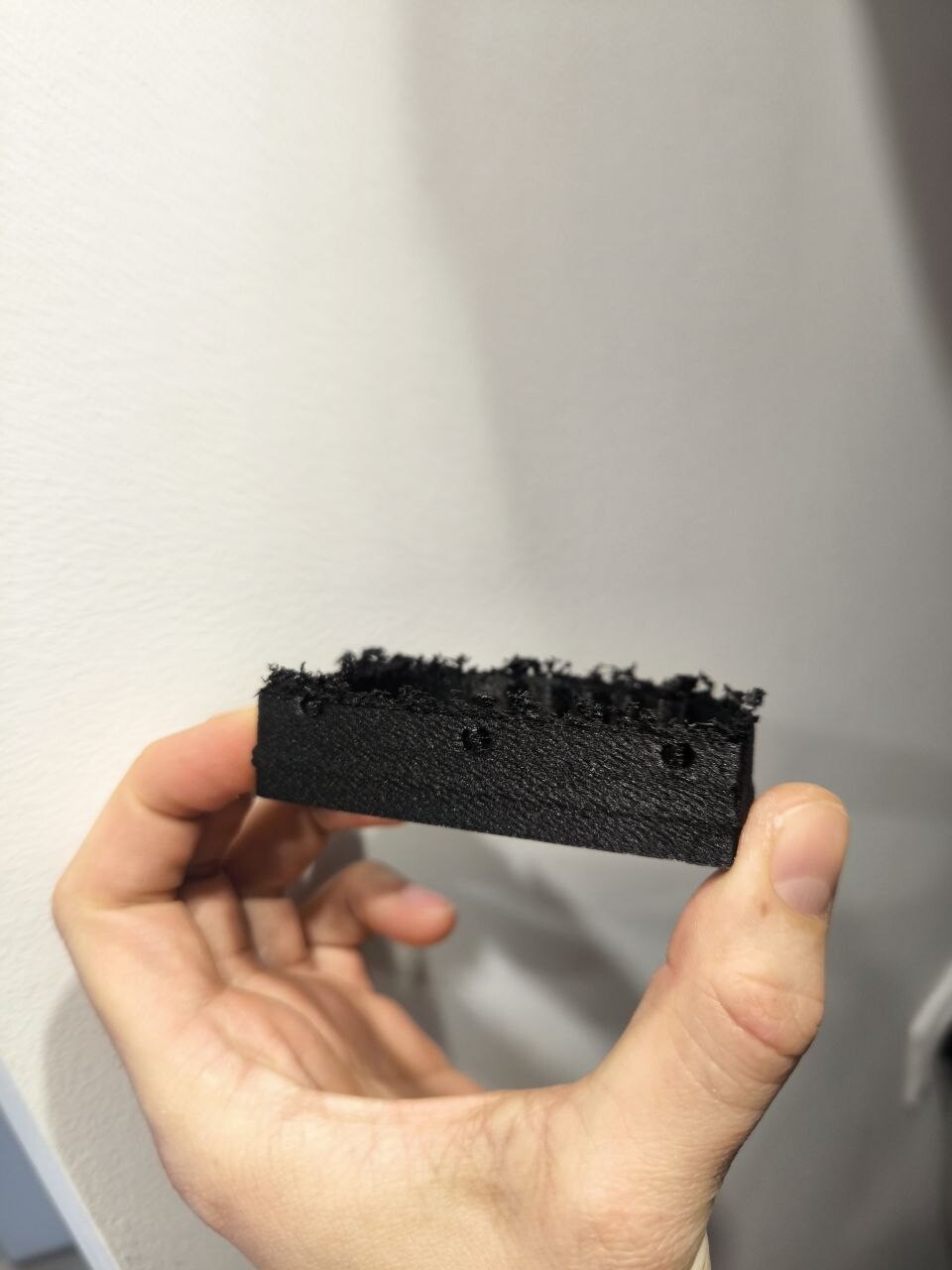 Доброго дня! Прошу подсказать на что обратить внимание. Печатаю модели из PA6-GF30 обычно штатно, но конкретно на этой возникает вопрос на одном из слоев и не понимаю почему. Первый раз подумал, что засорено сопло, заменил, второй раз заменил поддержку на древовидную, третий раз убрал выступающую часть на которой начиналось гадство. Подскажите, пожалуйста, что не так.