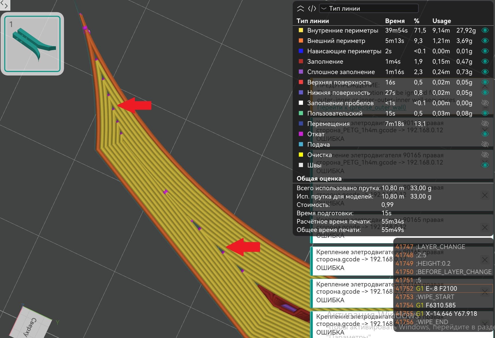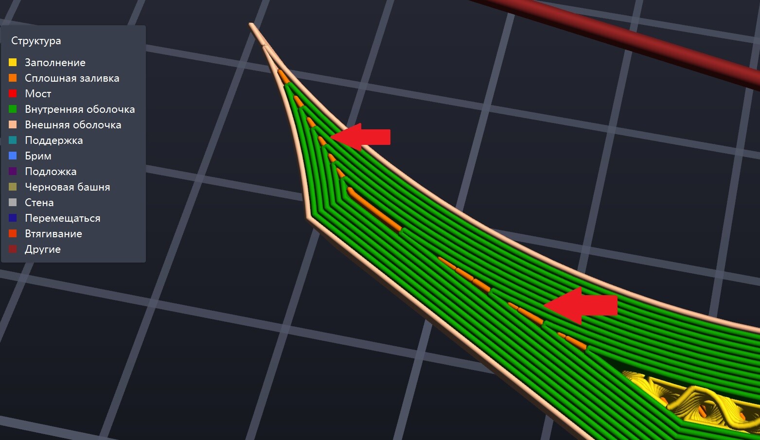 Принтер FlashForge 5M, в родном слайсере маленькие пробелы заполняются, в Orca Slicer не заполняются. Сквозные дыры при печати, их видно на скриншоте. Генератор периметров Aranche. Надо чтобы маленькие пробелы заполнялись.