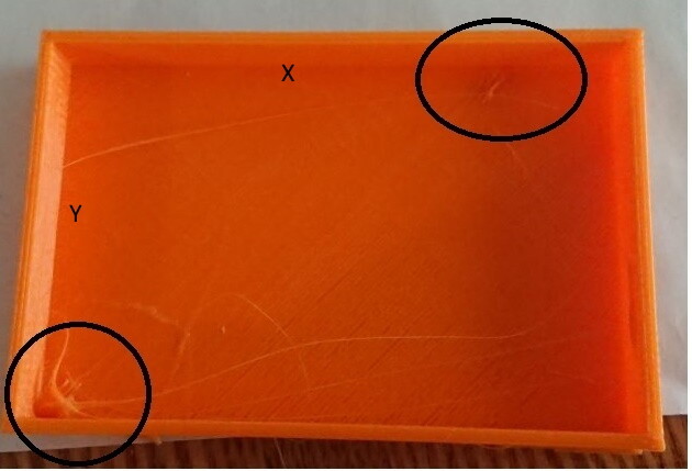 Дефекты на коробке и филамент вышел (Затягивал ключом). Размеры по Х (не соответствуют -0,3мм). Фото