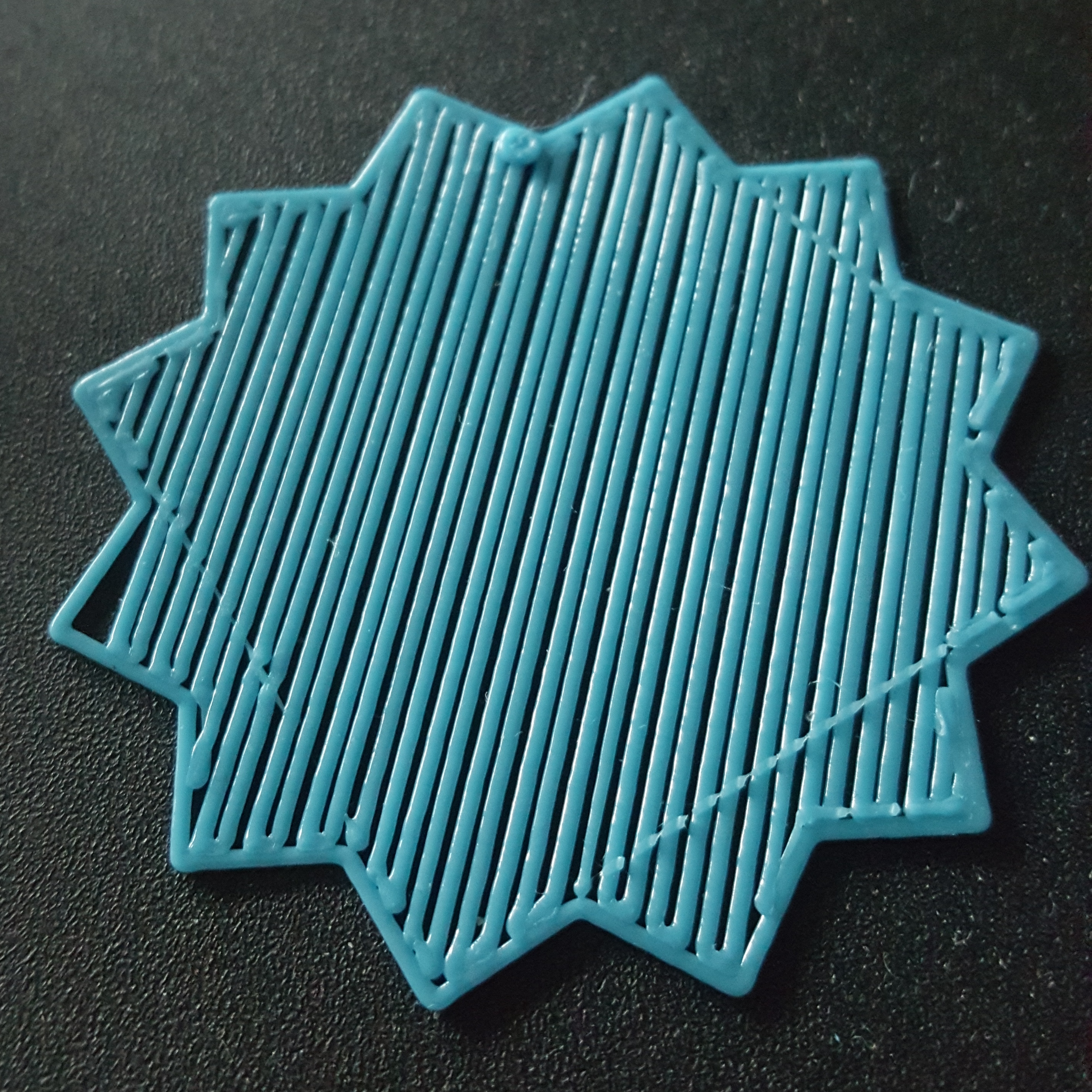Что бы я ни делал, выходит так. Следующие слои так же, получается марля. Слайсер - Cura 15.04. Что пробовал: flow менял в обе стороны (80-300%, если ставлю больше 150% то промежутки между нитями еще увеличиваются), перекрытие периметра и заливки от 15% до 35%, диаметр путка 1.6-1.8, диаметр сопла 0.3-0.8 (программно, реальное 0.5мм), толщину 1-го слоя 0.1-0.3, все галки в разделе Fix horrible ставил и убирал... Причем так печатает и в обычном режиме, и при спиральной печати. Помогите друзья плз!