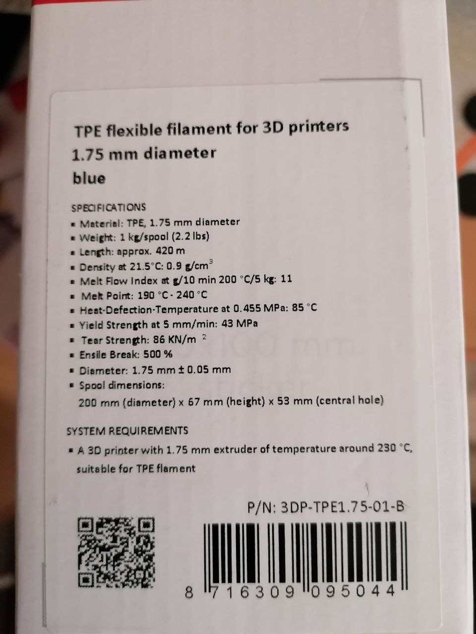Получил фактически на халяву пластик Tpe от Gembird, но вот параметров печати к нему не нашёл, переодически местами расходится по слоям, хотя в других местах спекаемость на уровне.