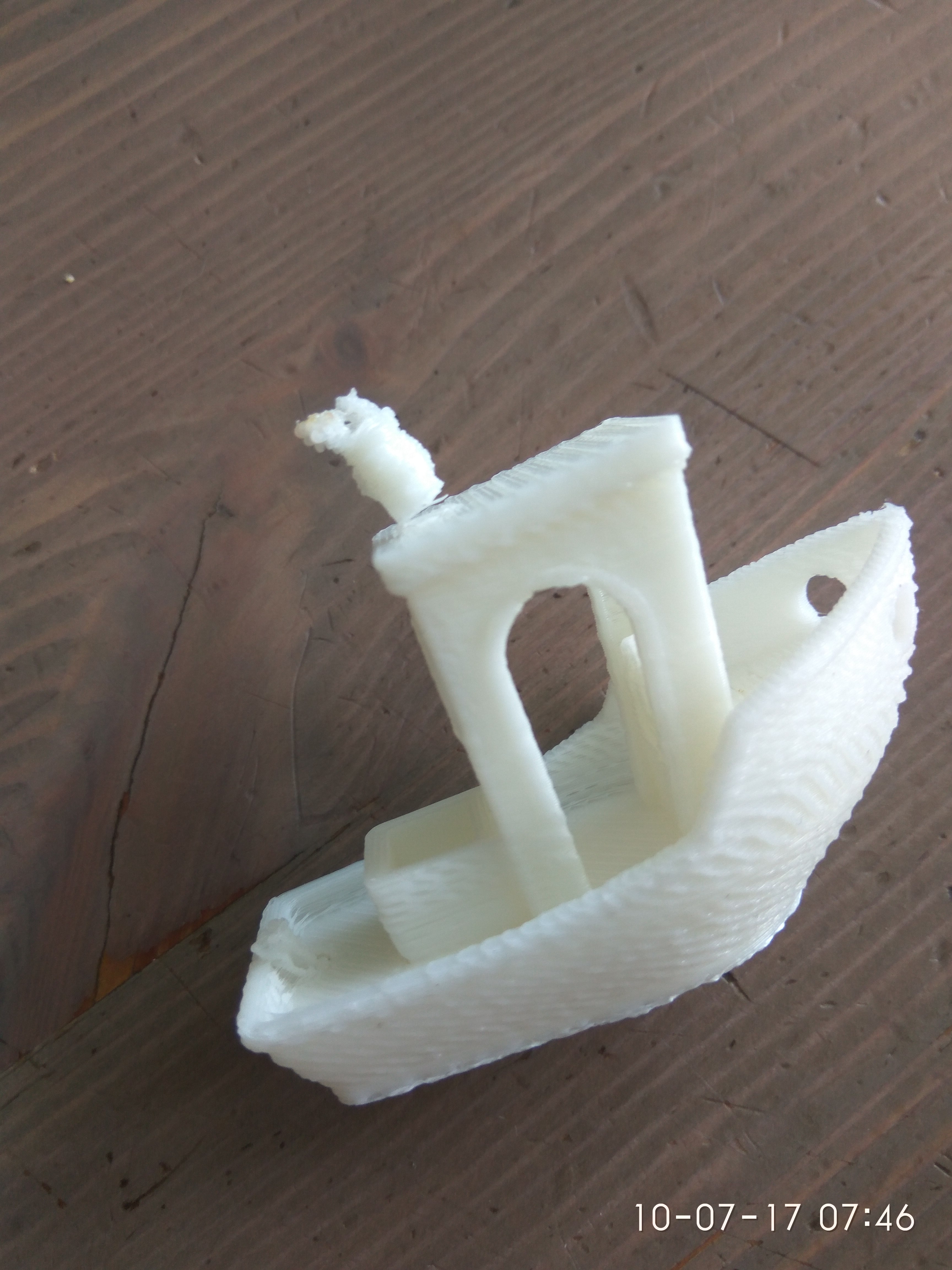 Толи пере толи недоэкструзия. Пытался распечатывать с генератора Gкода тесты выходит что flow оптимальный 0,7 или 0,8. температура вообще ни на что не влияет распечаталось одинаково от 225-260 (пластик белый fdplast) ретракт вроде настроил 1мм на скорости 15мм. Распечатал кораблик температура 250/100 экструзия 0,9 но затрещал экструдер я уменьшил flow до 90 на принтере. Потом сделал температуру 232/100 ретракт 1мм скорость 30мм и распечатал вот такой круговой тестНатяжители ремней поставил. Подшипники напечатал новые так как старые очень болтались (валы походу вообще говно попались)Немного туговато ходят но не клинят и не болтаются (кроме оси Y) .