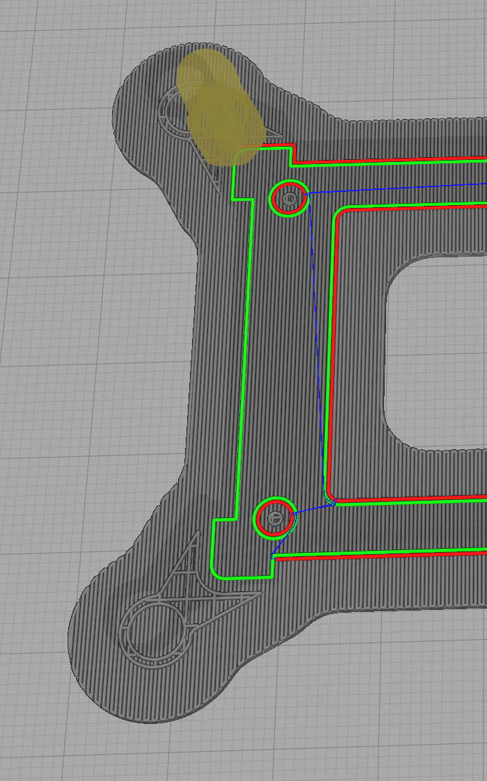 Столкнулся с таким не хорошим качеством отверстий на первых слоях печати (обведены желтыми кружками - деталь перевернута на фотке).С каждым последующим слоем качество печати отверстий улучшается. Подскажите можно ли как то настройками слайсера повлиять на улучшение качество печати отверсий, потому как на первых слоях они получаются не круглыми, а много-граниками? Скорость печати уменьшал - не особо помогло. Сопло 0.4 пластик ABS.
