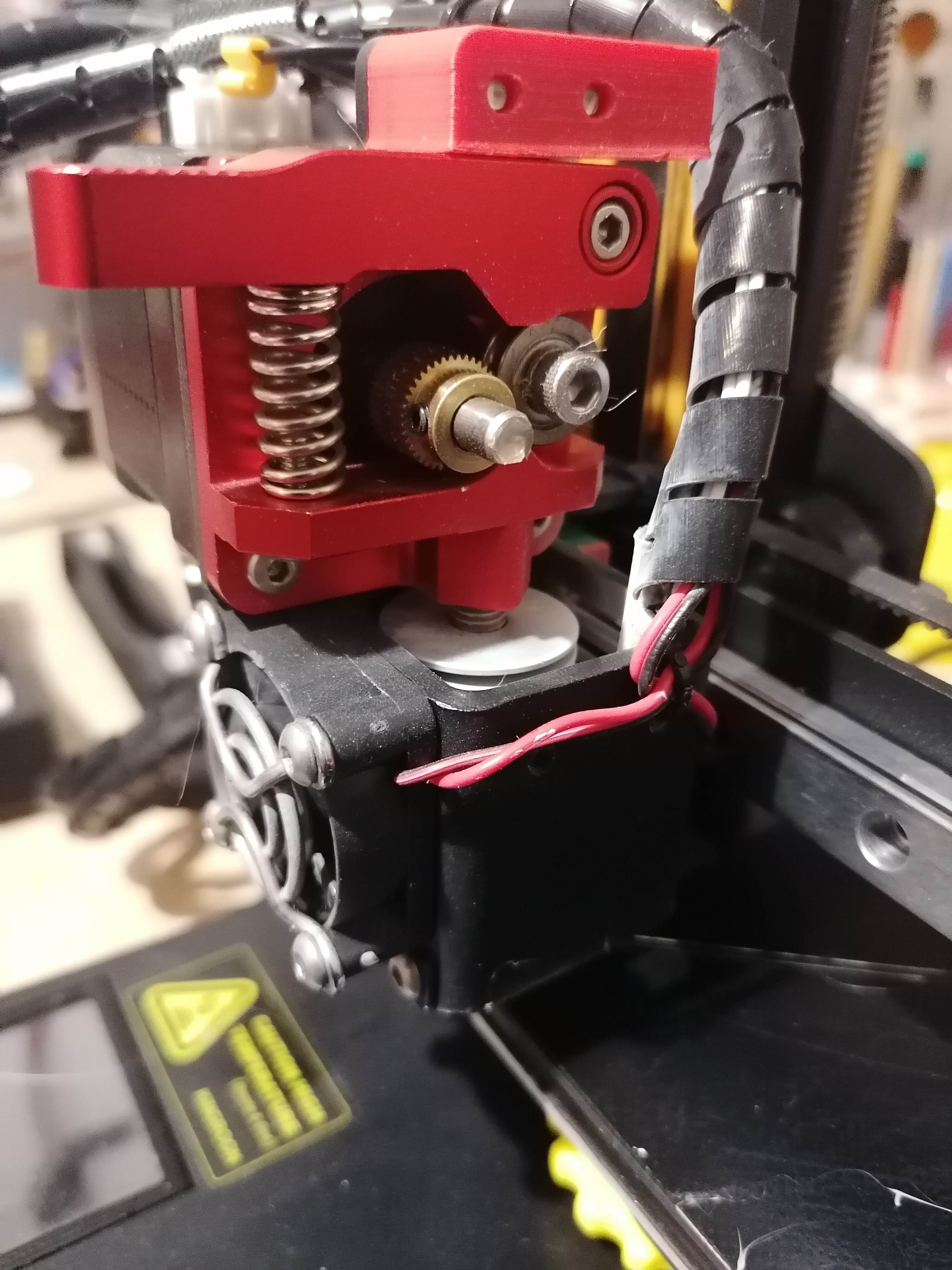 Вот такой странный дефект возник. Принтер долгое время печатал без нареканий, последние несколько дней очень интенсивно из PETG. Из возникавших проблем - только срывы с подложки, стол поровняли, всё ок. Понадобилась небольшая плоская деталь из PLA, у меня ESUN, печатается при 210 градусах. И пошла в сплошном заполнении дна недоэкструзия со щелчками. Рукой филамент проталкивается с трудом