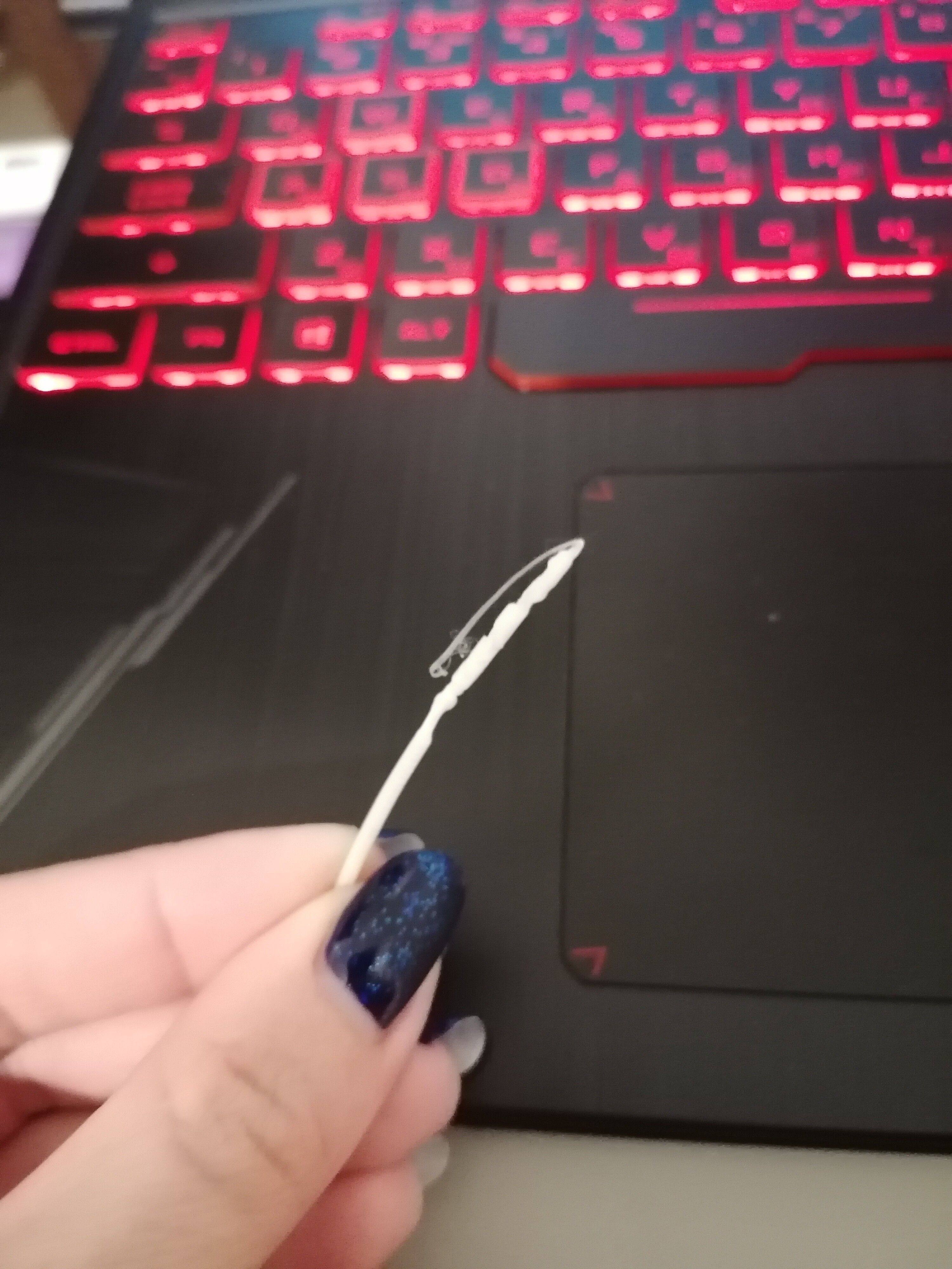 Вообще у Kingroon KP3S бывали проблемы с извлечением филамента, вернее с застреванием. Лучше всего работает принцип "шаг вперёд и два назад" - в разогретое сопло немного протолкнуть, чтобы пошла экструзия, потом резко выдернуть. Можно руками, можно через меню - на низкой скорости, например, 5 мм выдавить и потом на высокой откатить 60-70. Тут филамент извлекался через меню, два раза подряд одинаковая картина, будто последние 3 см кто-то погрыз: