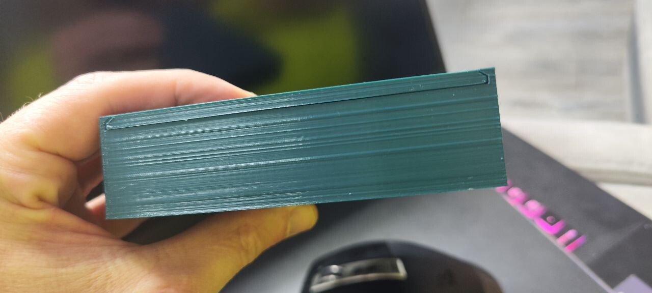 Всем привет! Печатаю одну и ту же коробку пластиком PETG (изумрудный), PLA (сиреневый) в одном и том же месте на коробке полосы спереди и сзади (ось x). Заметил, что эти полосы располагаются по всей ширине текста который на боковых стенках по оси y. Где искать проблему и как с ней бороться? Модель готовил в Fusion 360