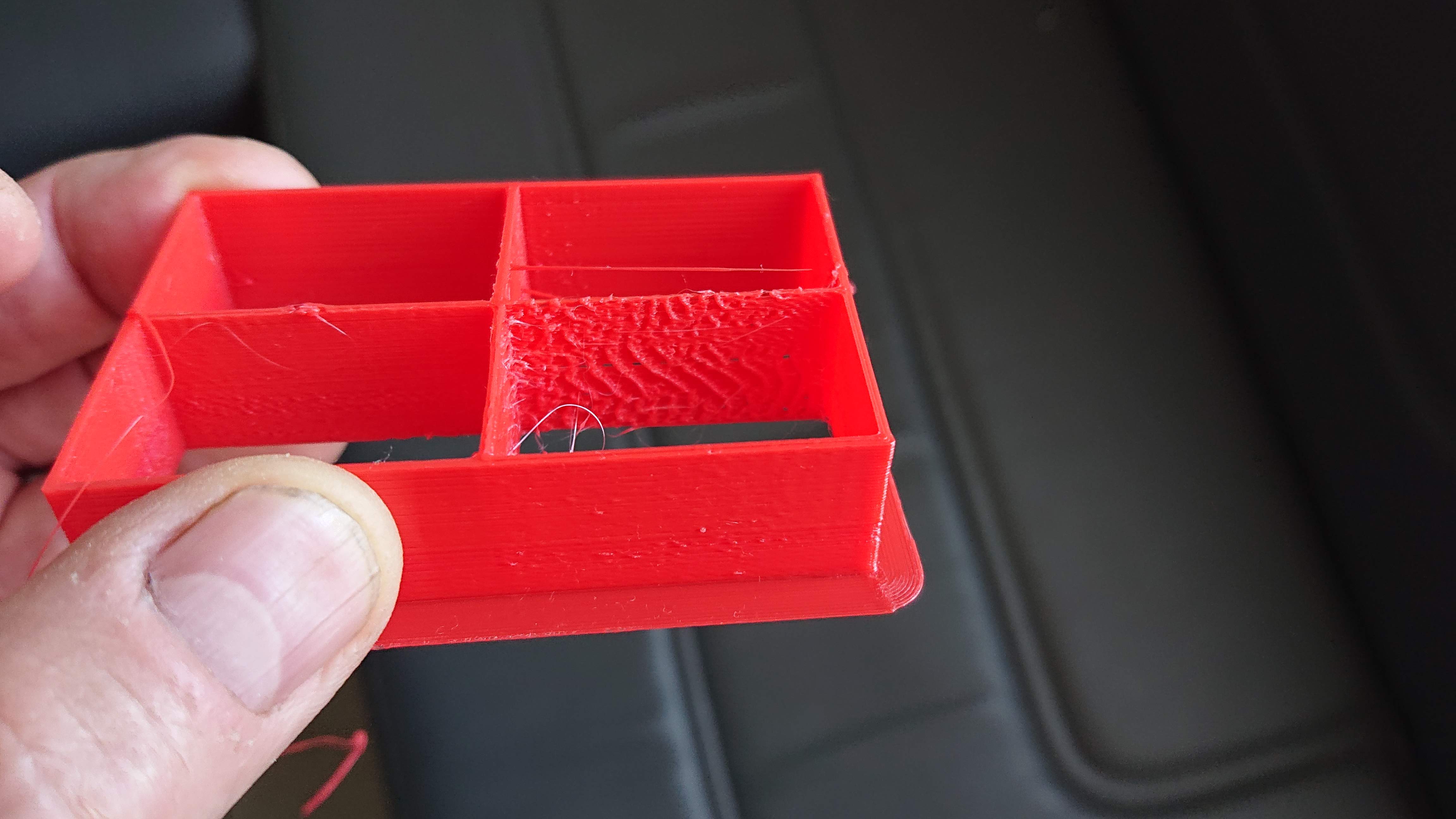 Недавно купил принтер Flying bear ghost 4 и начал осваивать 3д печать. Откалибровал поток, постоянно меняю настройки слайсера, эксперементирую. Начертил новую голову под более удобный обдув с двумя вентиляторами. Еще правда не доделал, вентилятор идет из Китая. Наконец то стало получаться более менее приличное качество. И вдруг все стало плохо, фото прикрепил. Как с этим бороться и куда копать не понимаю. Увеличивал, снижал и поток и температуру, а также скорость. В Cura менял профили, а результат один. На фото деталь где во время печати менял температуру и поток. Поменял пластик, ничего не изменилось. Пластик Petg, скорость 40, температура от 225 до 245. Подскажите пожалуйста, что это может быть?