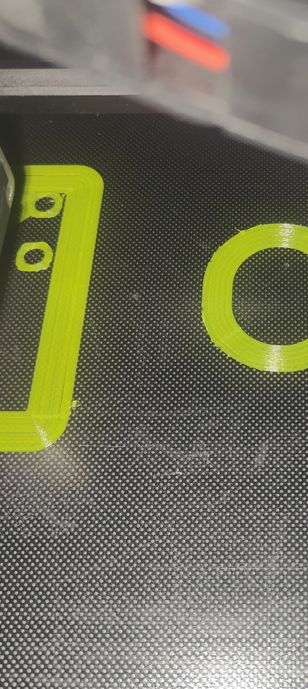 На фото вроде как видно, печатаю держатель под филамент, включил тип прилипания "кайма", собственно на ней и началось.