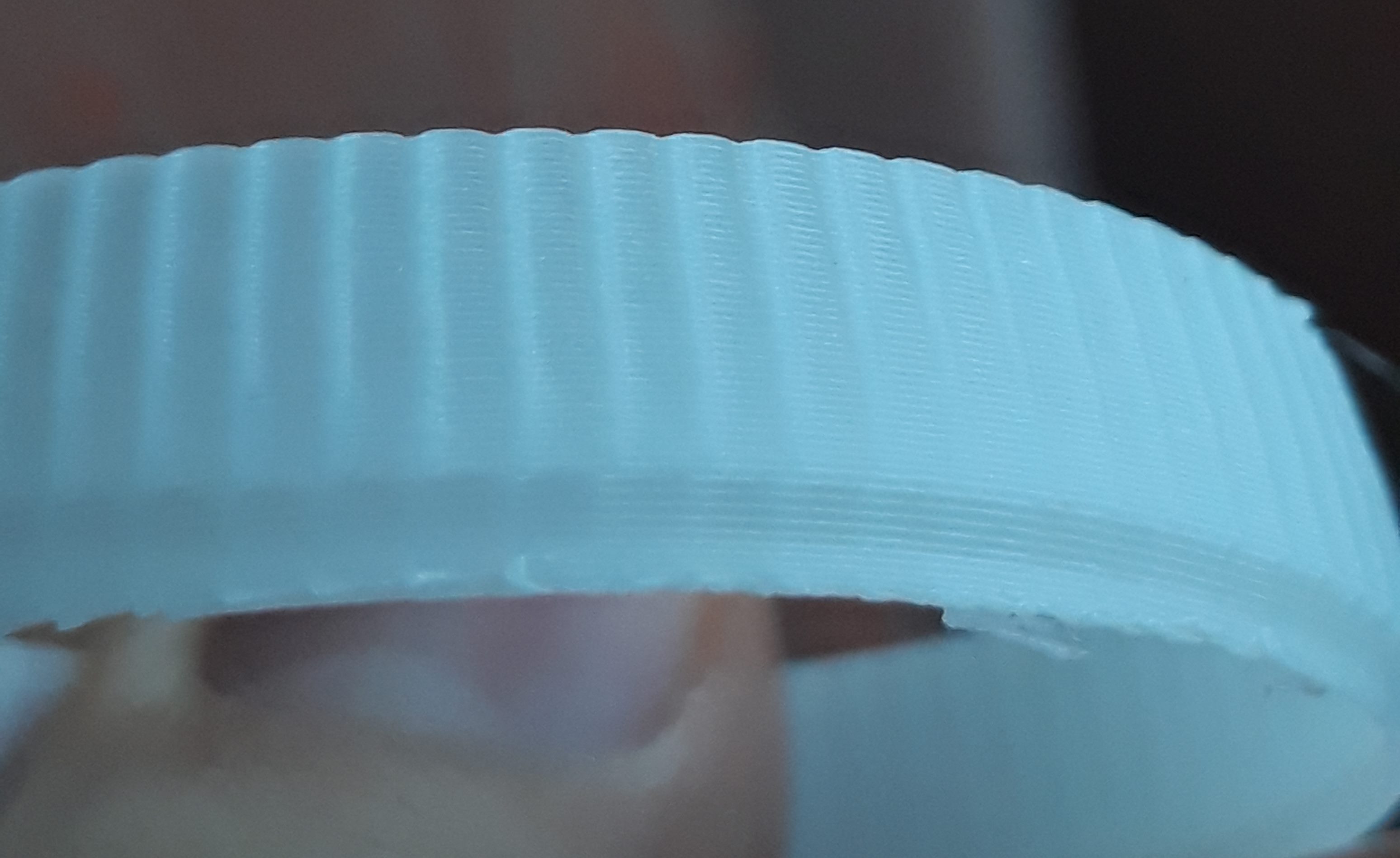 Результат ниже - на стыках сегментов кривой возникают наплывы по все высоте изделия. Правда, почему-то на первых нескольких слоях это не так заметно (на первой картинке видно) но потом идет без изменений по всей высоте.Уже успел покрутить параметр DELTA_SEGMENTS_PER_SECOND в прошивке (может, процессор тупит при расчете следующего сегмента), но лучше не стало. Какое значение стоит у вас?