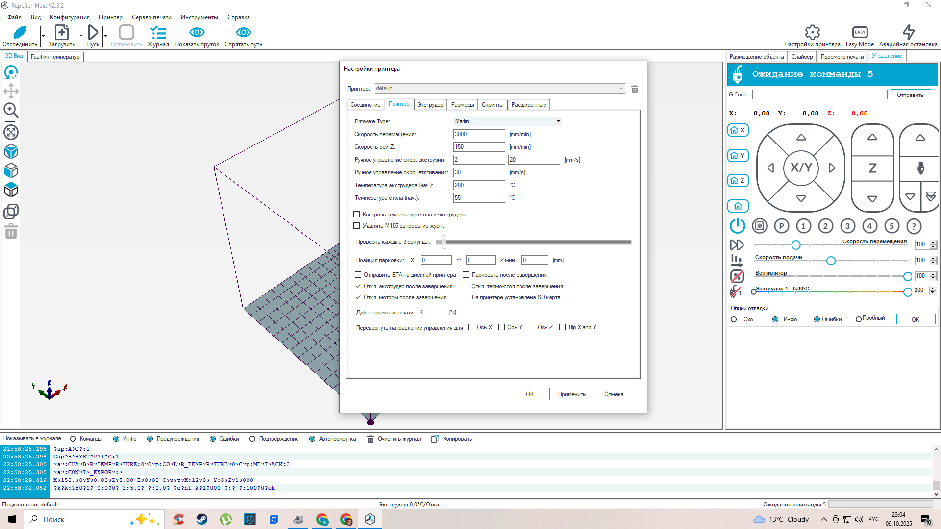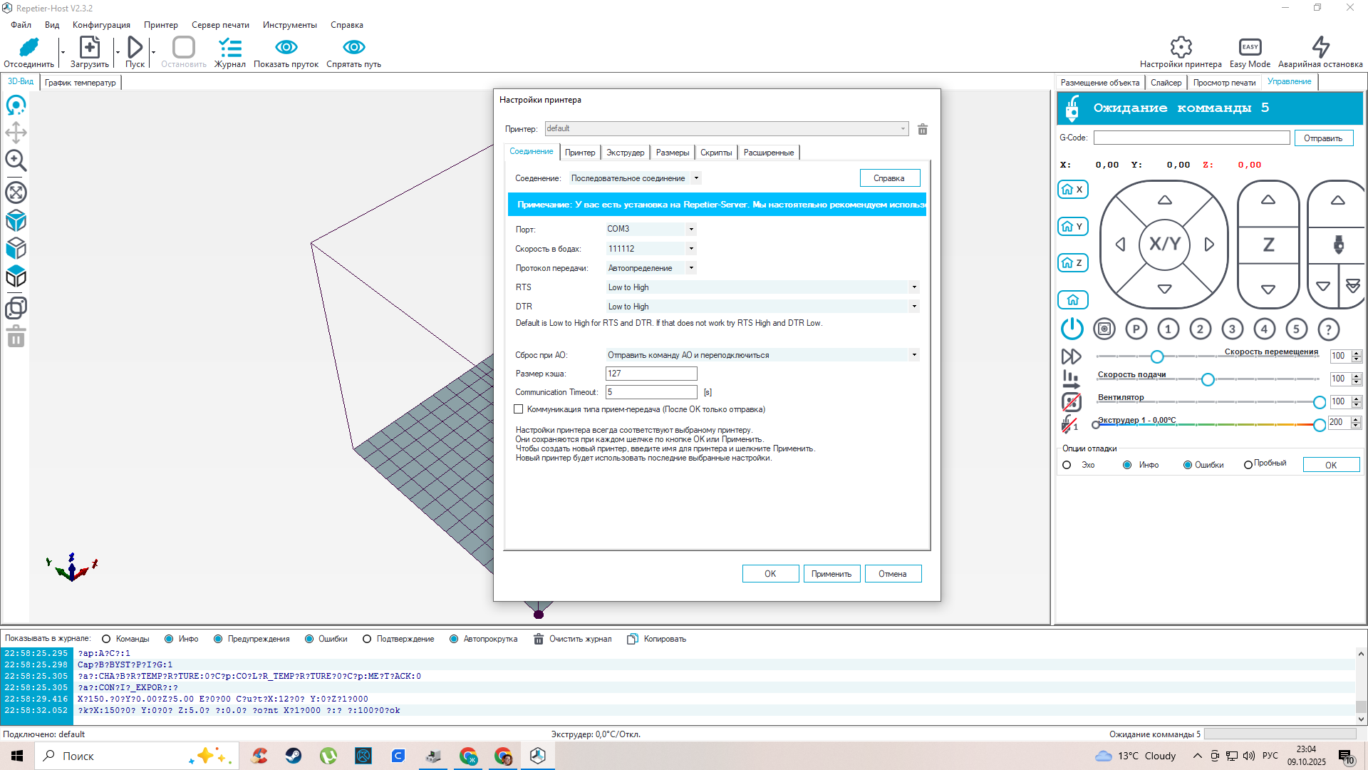 Принтер очень долго думает(или бывает вообще не отвечает) в Repetier-Host