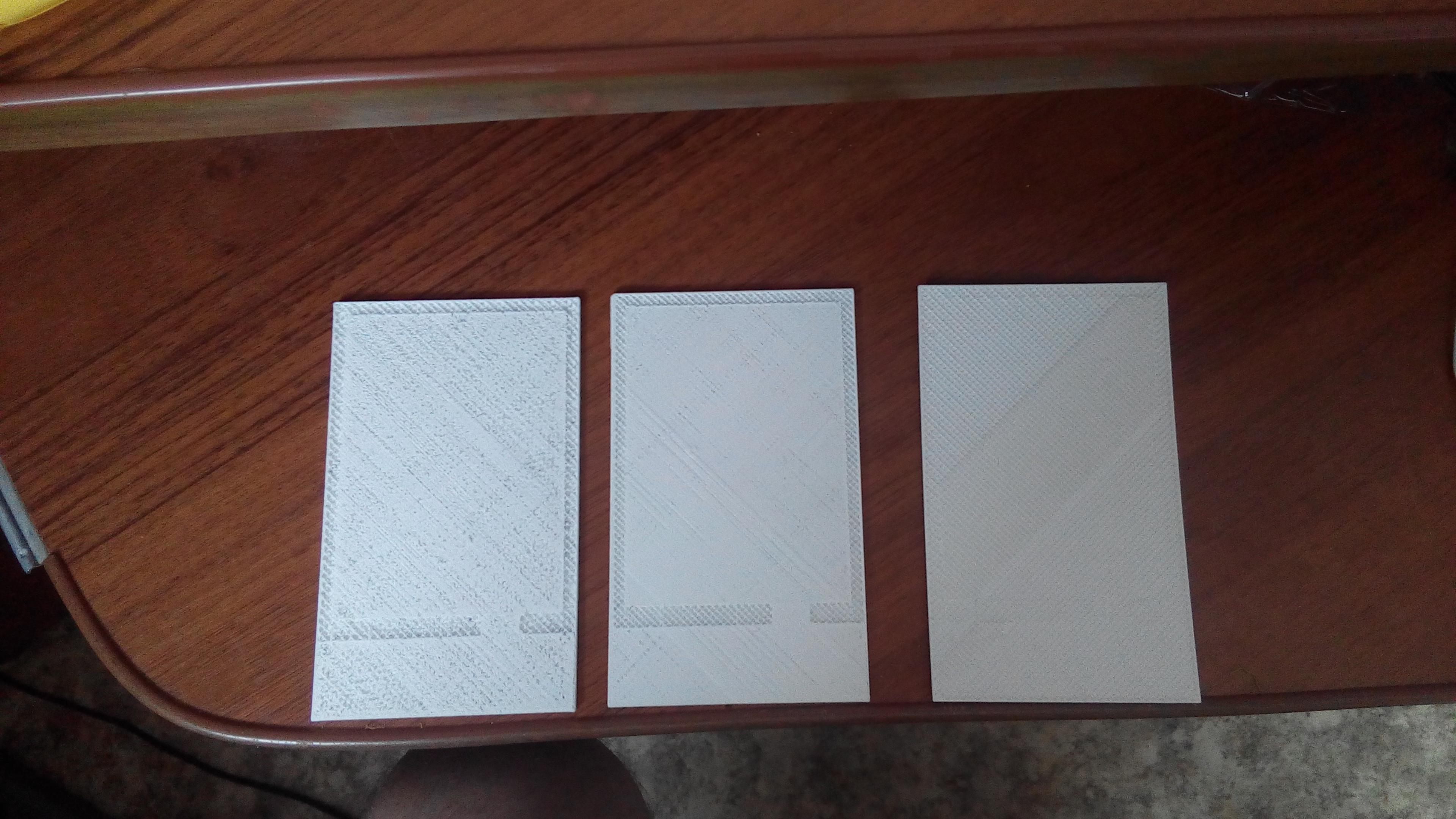 Сначала заполнение сделал 20 или 15 ( уже не вспомню). При этом, как видно на фотографии, появились какие-то полоски на первом слое (делал с каймой в качестве прилипания к столу). Скорость при этом стояла 50 или 60.