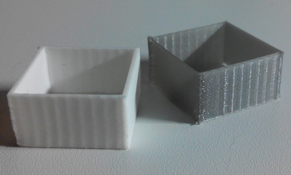 Вот что можно понять по этому фото - ремни ослаблены или перетянуты (по крайней мере по частоте повторов, похоже, что это 'звук ремня';)?Началось с того, что для начала я хотел хотя бы временно убрать грохот шариковых линейных подшипников на валах, распечатав вместо них самодельные из пластика. Попутно думая, что уйдёт и вот та рябь по Y на фото выше (образец справа опечатан SBS ещё на оригинальных подшипниках, слева (белый) - из PLA после замены на напечатанные из него же).