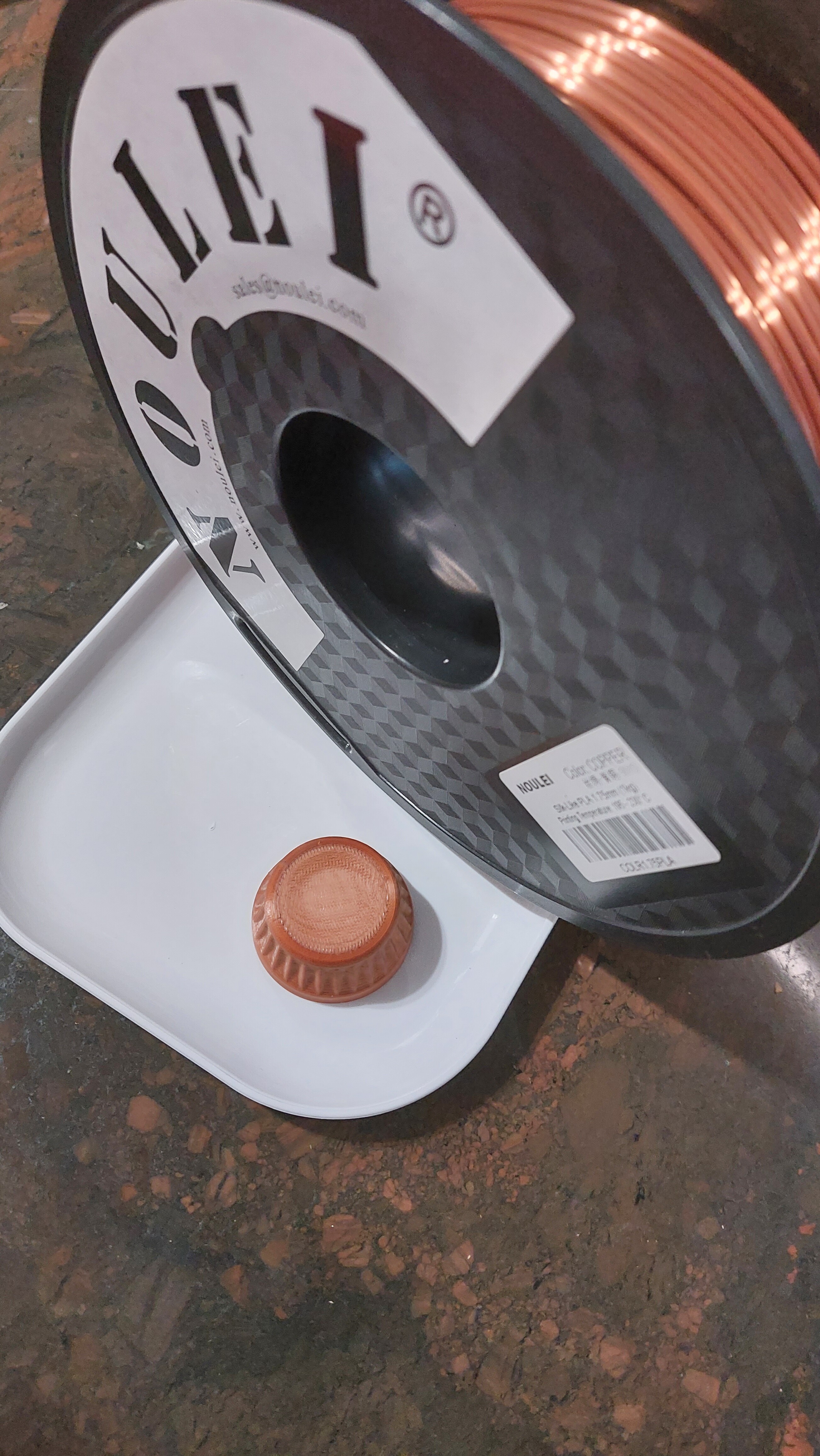 Привет. Подскажите, что можно поправить. Печатаю шелковым PLA от NOULEI. В ктушке пластик обладает отличным блеском, чего не скажешь о напечатанном изделии. В изделии это не медь, а скорее что-то коричневое. Слой 0.16, температура 210, скорость 50. Пластик не новый, ему около года. Есть впечатление, что раньше получалось получше из него, но могу и ошибаться. Какие вообще нюансы есть с шелковыми филаментами? Спасибо.