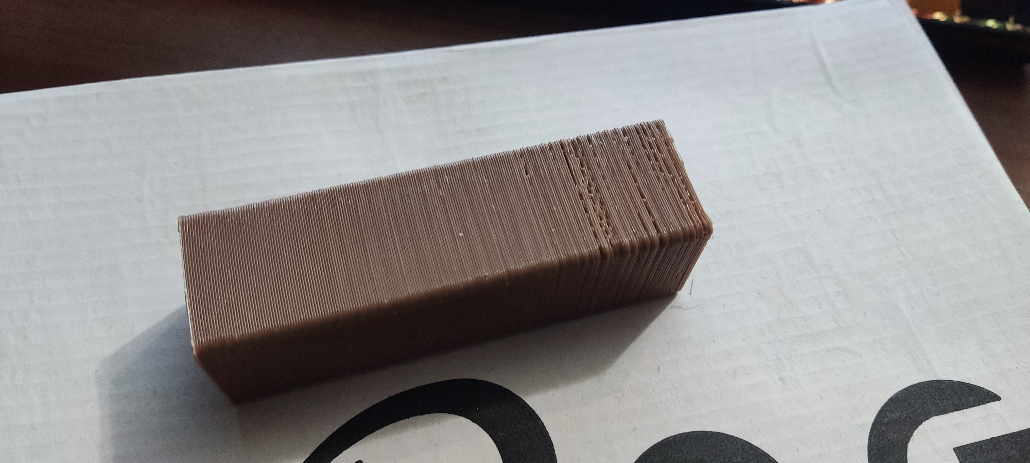 Суть проблемы в следующем - мне понадобилось напечатать несколько корпусов под аккумуляторные сборки, поставил пробную печать, получил расслоение модели (явная недоэкструзия) да конское время печати. Ладно, прочистим, а лучше поменяем сопло, решил я, и чтобы сэкономить время на печать, поставил сопла 0.8мм. Пластик abs. Поставил скорость печати 50, обдув 50, толщину слоя 0.4, скорость перемещения 150, температура сопла 240. По итогу пробной печати получил вот это:До этого при аналогичных настройках, но на сопле 0.4 все было очень даже хорошо, тем же пластиком. печатал им месяца 3 назад. Получалось как-то так :