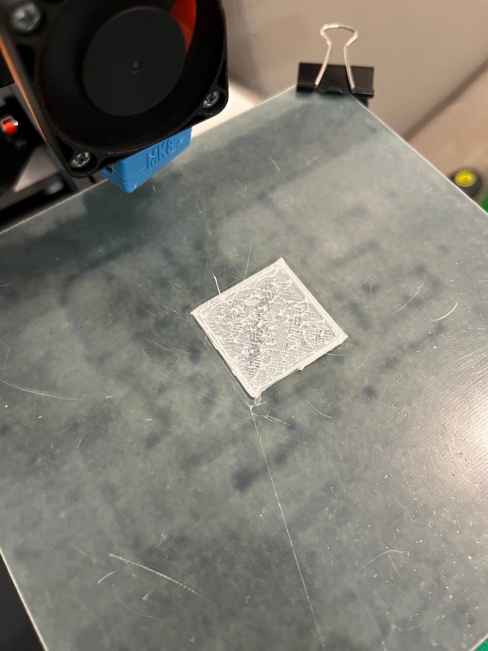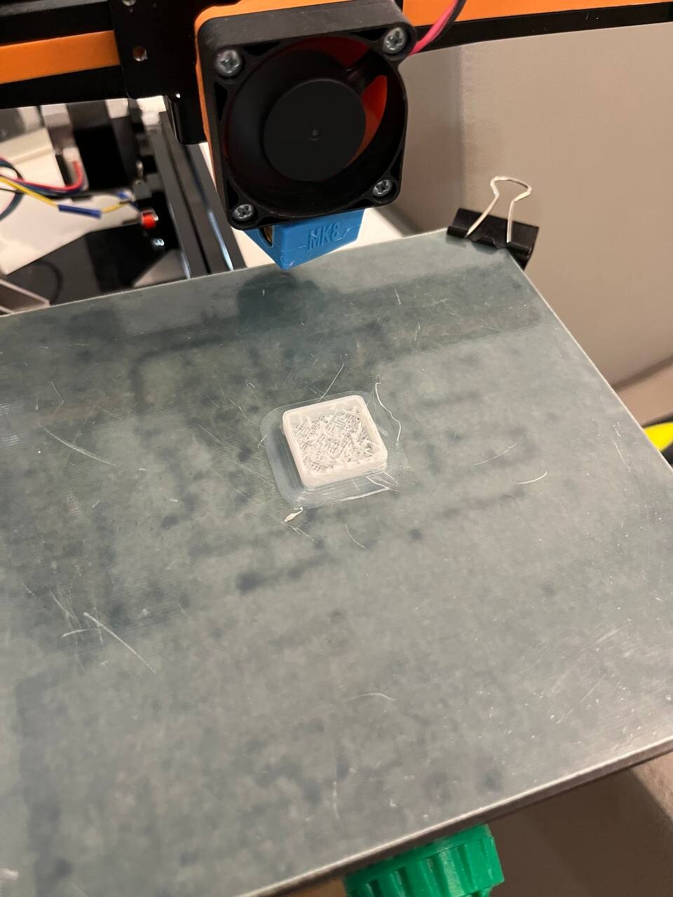 Здравствуйте, начались проблемы во время печати, первый слой вроде печатает неплохо, а потом начинается что-то непонятное, пробовал разные слайсеры, меняли старое сопло на новое. Сам являюсь начинающим пользователем 3d-принтера, определить причину проблемы не получается. Прикреплю фото двух попыток напечатать калибровочный кубик.