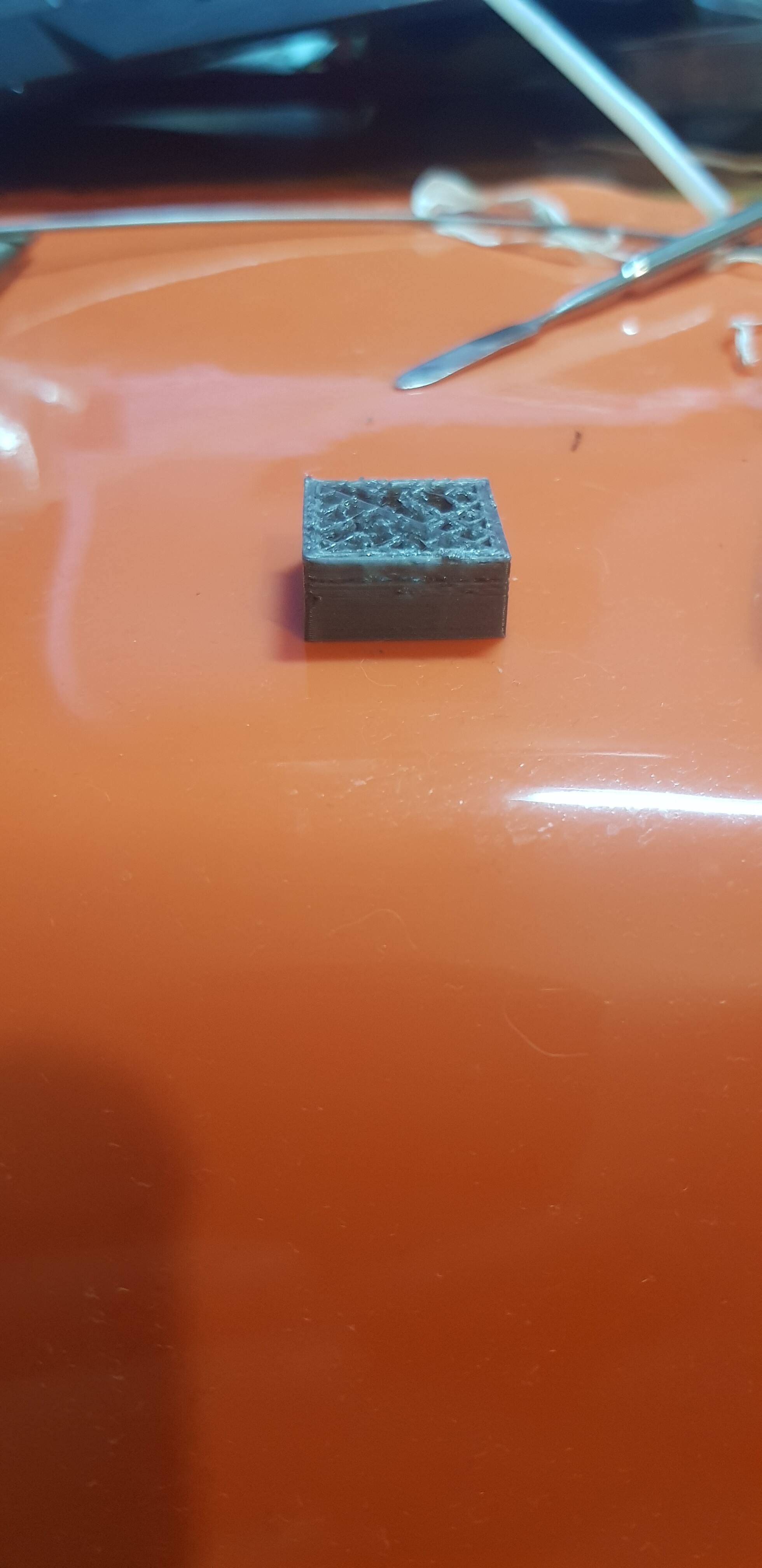 Пластик petg от sopytka.ru(производитель рекомендует температуру печати 220-240), подачу пластика откалибровал в 0(подается ровно столько сколько требуется), с температурой игрался, пробовал от 220-250(измерял термопарой на кубике температуру, показало разница -10 градусов с той что в программе указана), стол 80 градусов, первый слой печатается отлично, дальше начинается недоэкструзия, не важно, при заполненении или при печати контура. Скорости пробовал 30-60мм/с, первый слой 15мм/с высота слоя 0.2, сопло 0.4, хотэнд e3d v6 заказывал на алике.