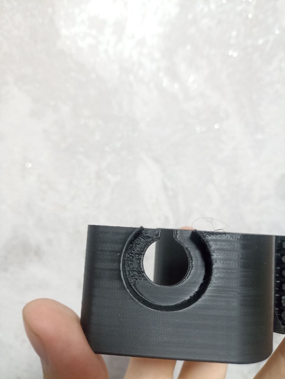 Всем привет печатники. Никогда такого не было и вот опять проблема. Не могу понять из-за чего может быть такая проблема. Когда допечатывает отверстие начинает разрывать внешний слой, из-за чего такое может быть. Странно что я включал поддержки и печатал без них, результат один и тот же, странно. Подскажите в чем может быть проблема.