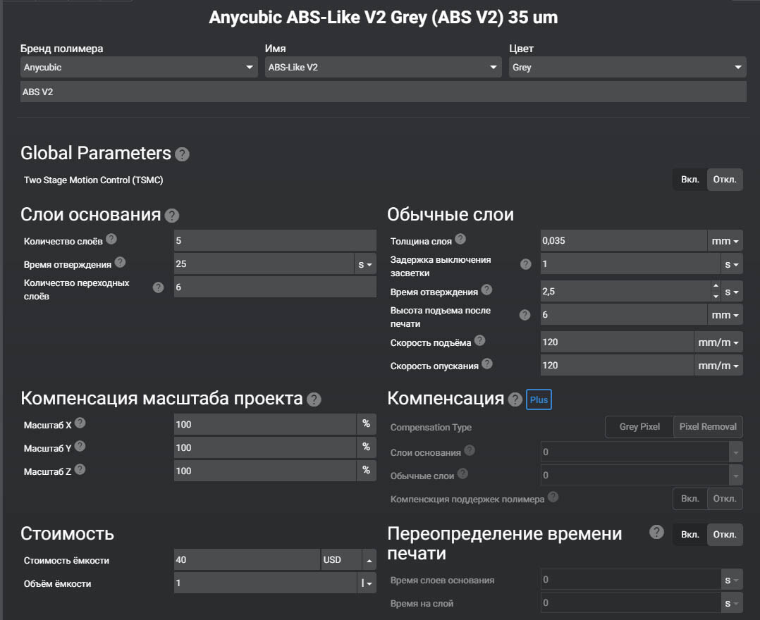 Проблемы при печати смолой ABS-Like Resin V2