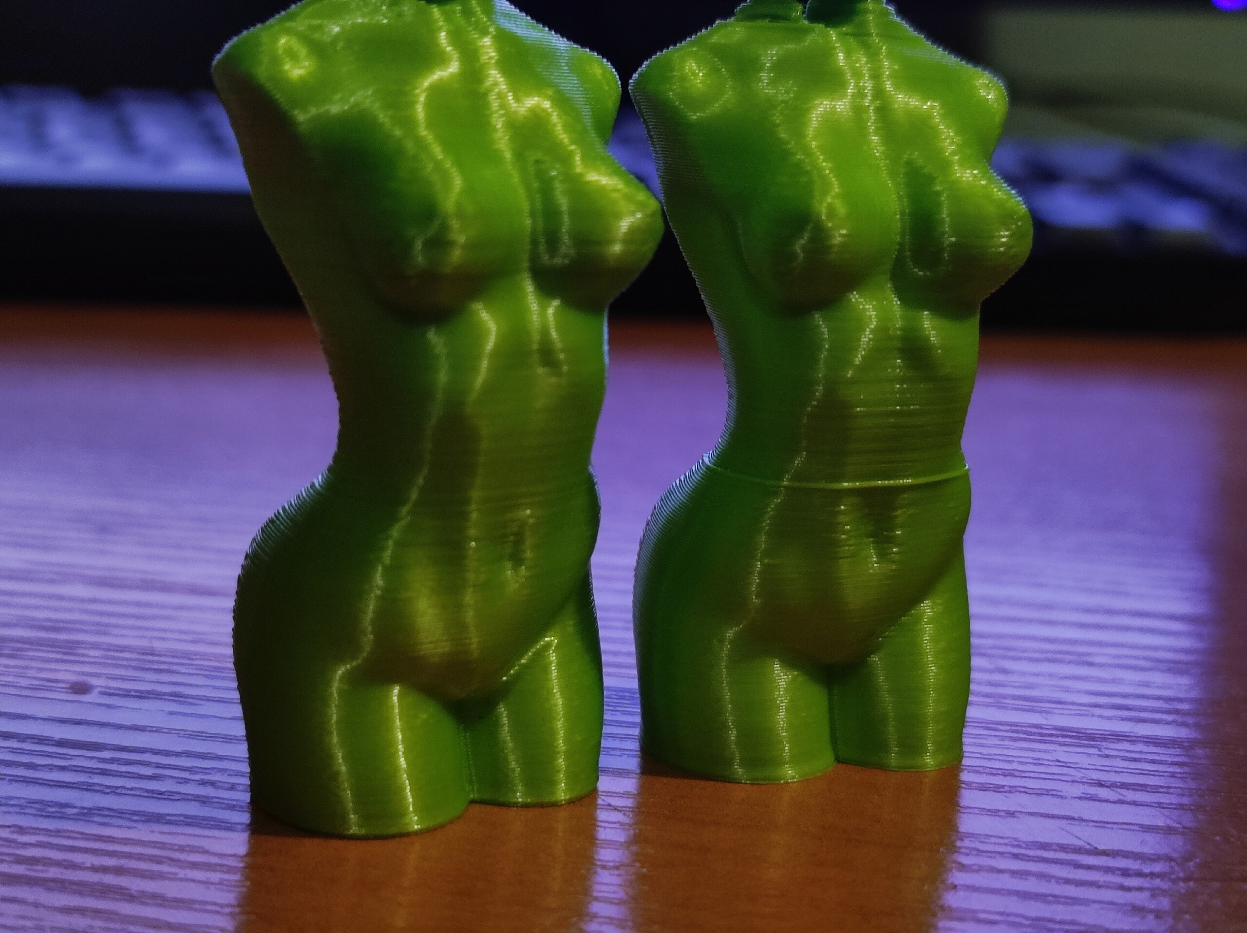 Добрый день,столкнулась с неприятной проблемой.Принтер anycubic mega x,в пользовании меньше года. При печати начал издавать два странных звука,первый шел из печатной головки,то ли скрип,то ли трение сильное,а второй,будто бы сопло прям по столу движется(хотя калибровка нормальная,и сопло по столу не терлось) . Решила поменять экструдер,и проблема со скрипом ушла,но звук трения сопла об стол остался.И добавилась новая проблема,неравномерные слои,странная подача(вверху модели хорошо видно). У них один gcode, напечатаны одним и тем же пластиком.