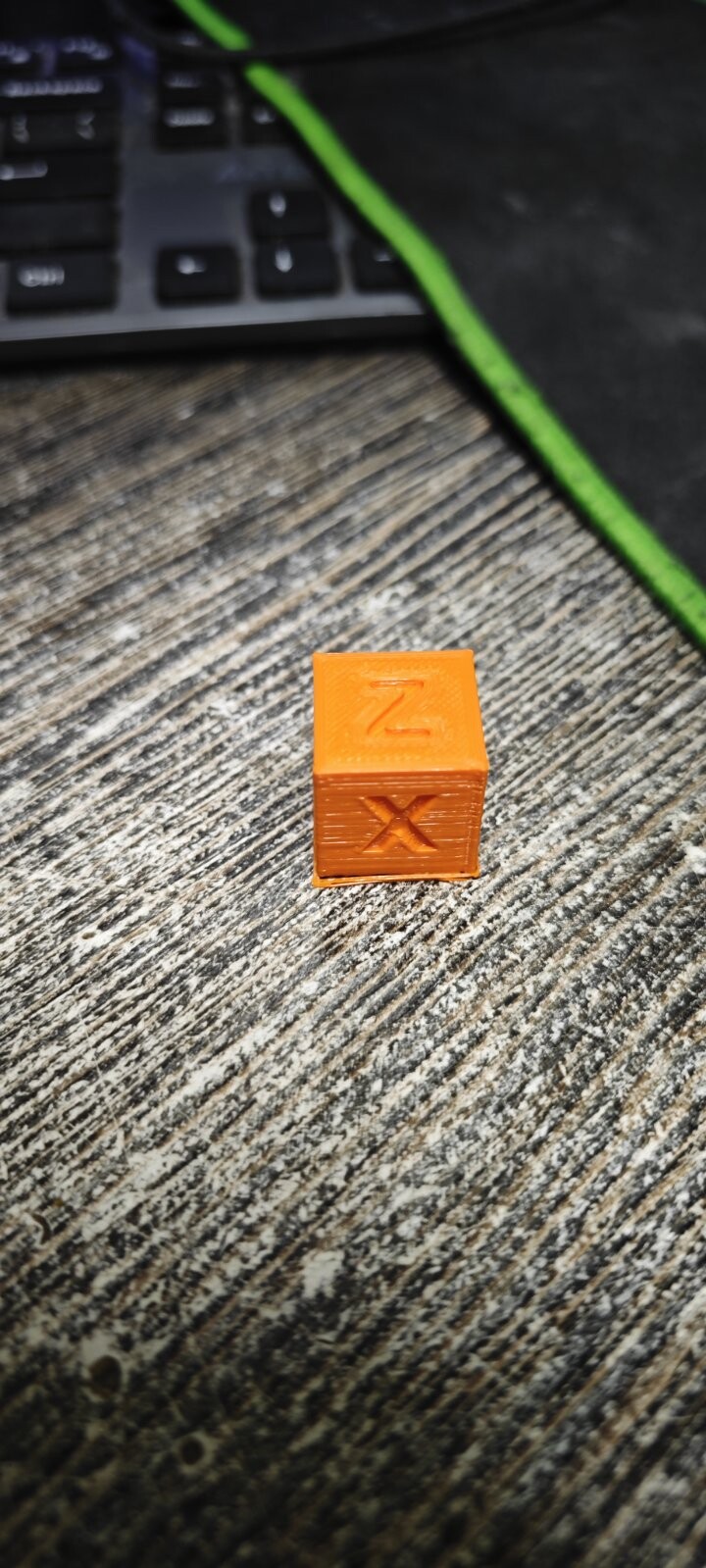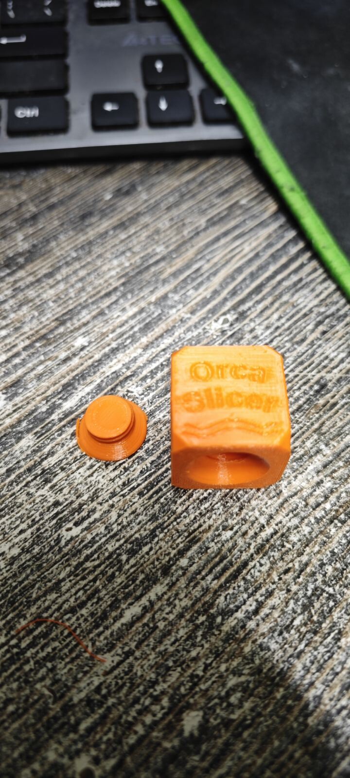После перехода на Orca slicer проводил различные калибровки, в первой печати тестового кубика проблемы со стенками (непонятно откуда взявшиеся переэкструзии) начинаются ровно после того как завершается печать винта (в верхней части видно, что со временем стенки нормализуются).