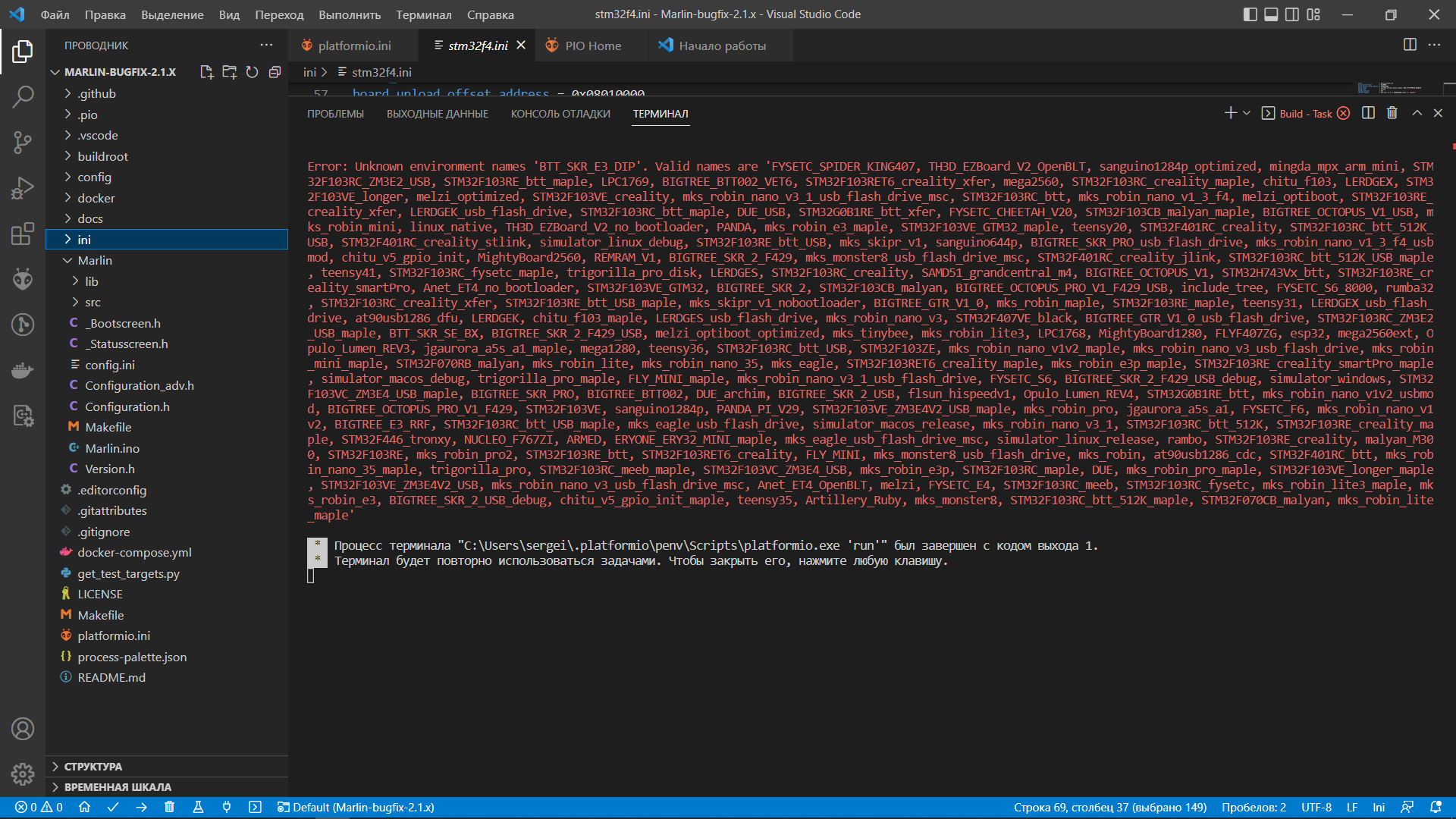 BIGTREETECH SKR E3 DIP V1.1 чип stm32f103ret6 при компиляции выдает такую ошибку