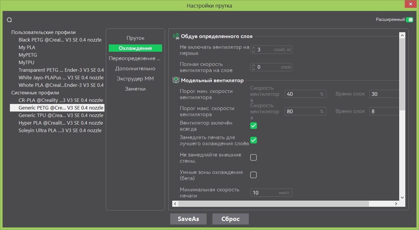 использовать настройки охлаждения для печати этим пластиком "нормальных моделей" (конкретно у меня это для петга вот так) ?