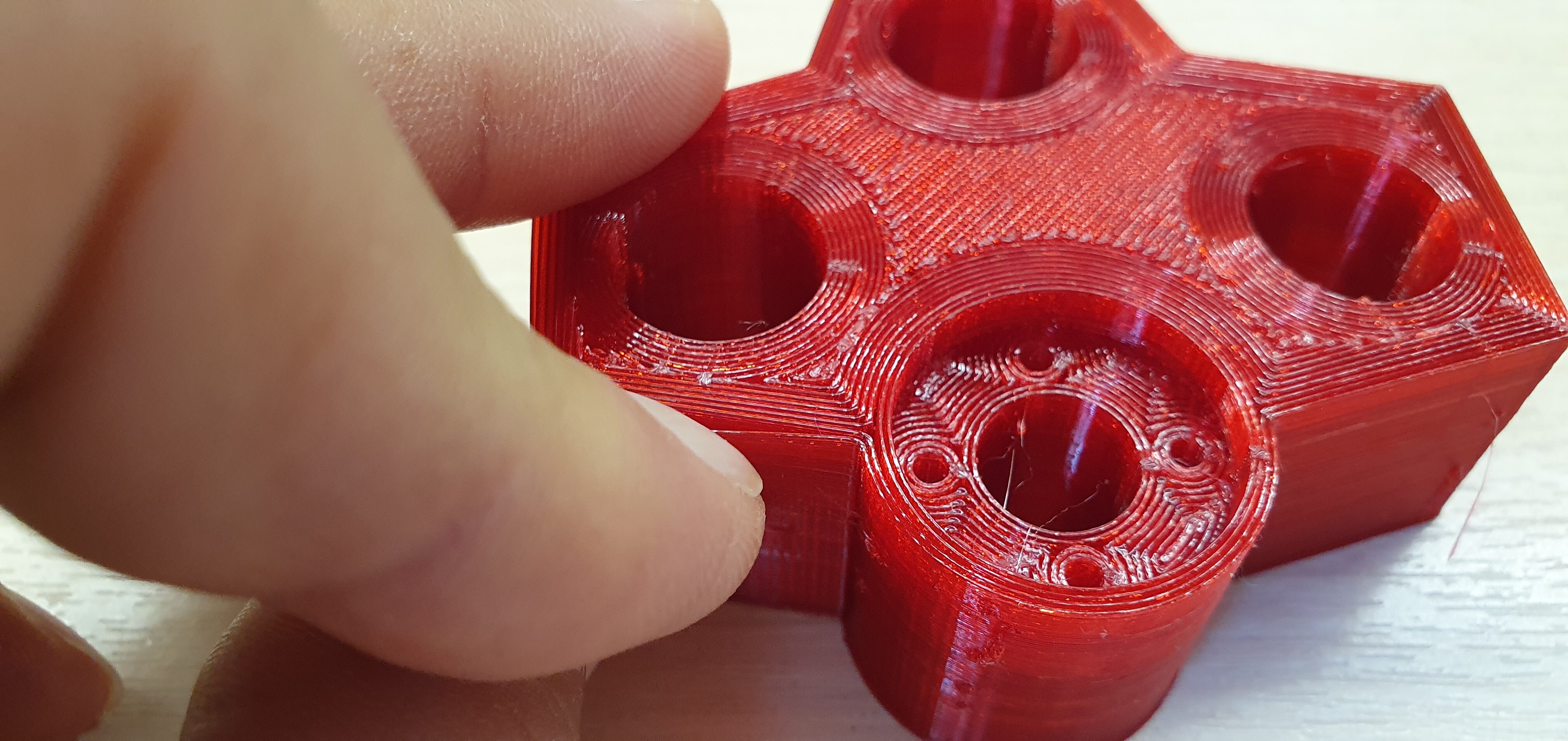 Столкнулся с проблемой и давно уже не могу решить. Расслоение стенок. Выяснил, чоо от марки пластика не зависит и pla пробовал и petg. Вот последний случай. PETG заполнкние 10% температура печати 235. Снизу стекло 75 градусов. Поверхность гладкая. Слоновость маленькая почти не наблюдается.
