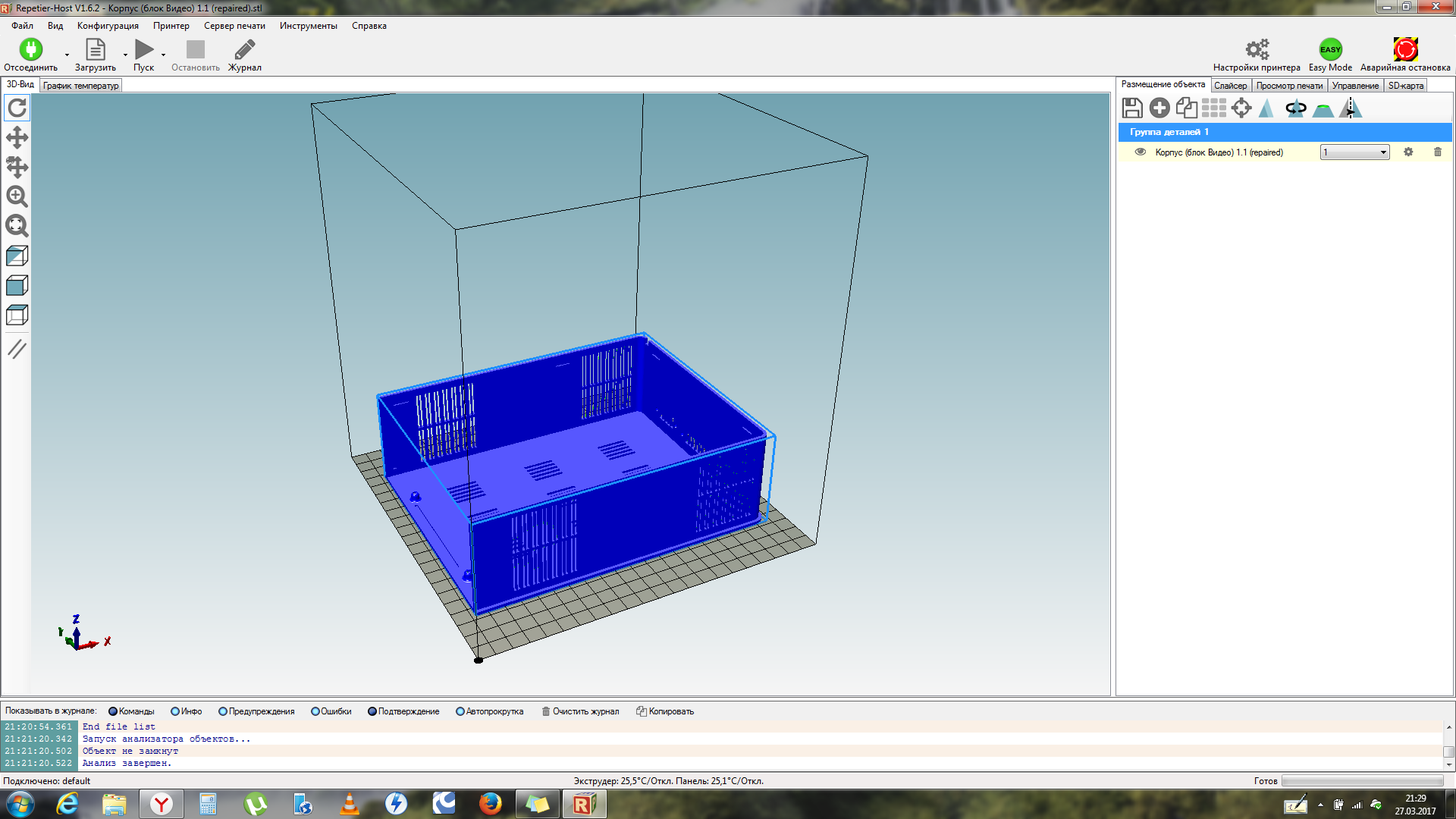 Repetier-Host не печатает отремонтированную в Netfabb модель