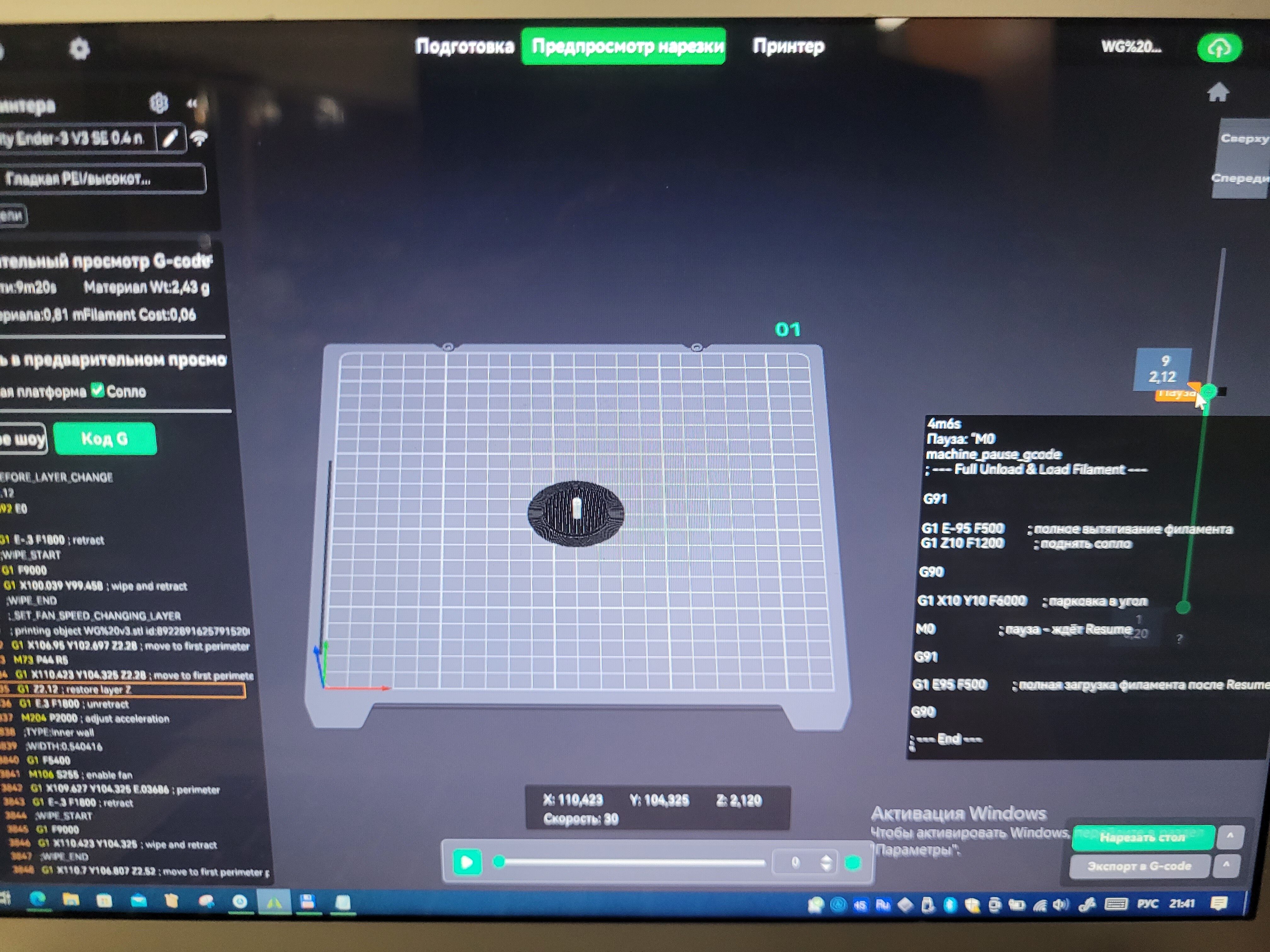 Ender 3 v3 se, прошивка 1.0.9.9 (форк от navaismo), слайсер Creality Print. Материал PLA