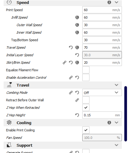 Раньше такого не было, не могу понять с какого момента это началось. Принтер Anycubic Mega-S. Слайсер кура 4.1.0. Печать с сд-карты или через октопи - эффект одинаковый. Пробовал печатать старые gcode, которые уже печатались раньше без проблем. Они и сейчас печатаются без проблем. А любые новые имеют такие паузы. Пробовал переустановить куру, не помогло. Установил симплифай3д, на скорую руку нарезал модель в нём, насколько смог в нём разобраться, но всё равно всё те же паузы. В чём может быть проблема?
