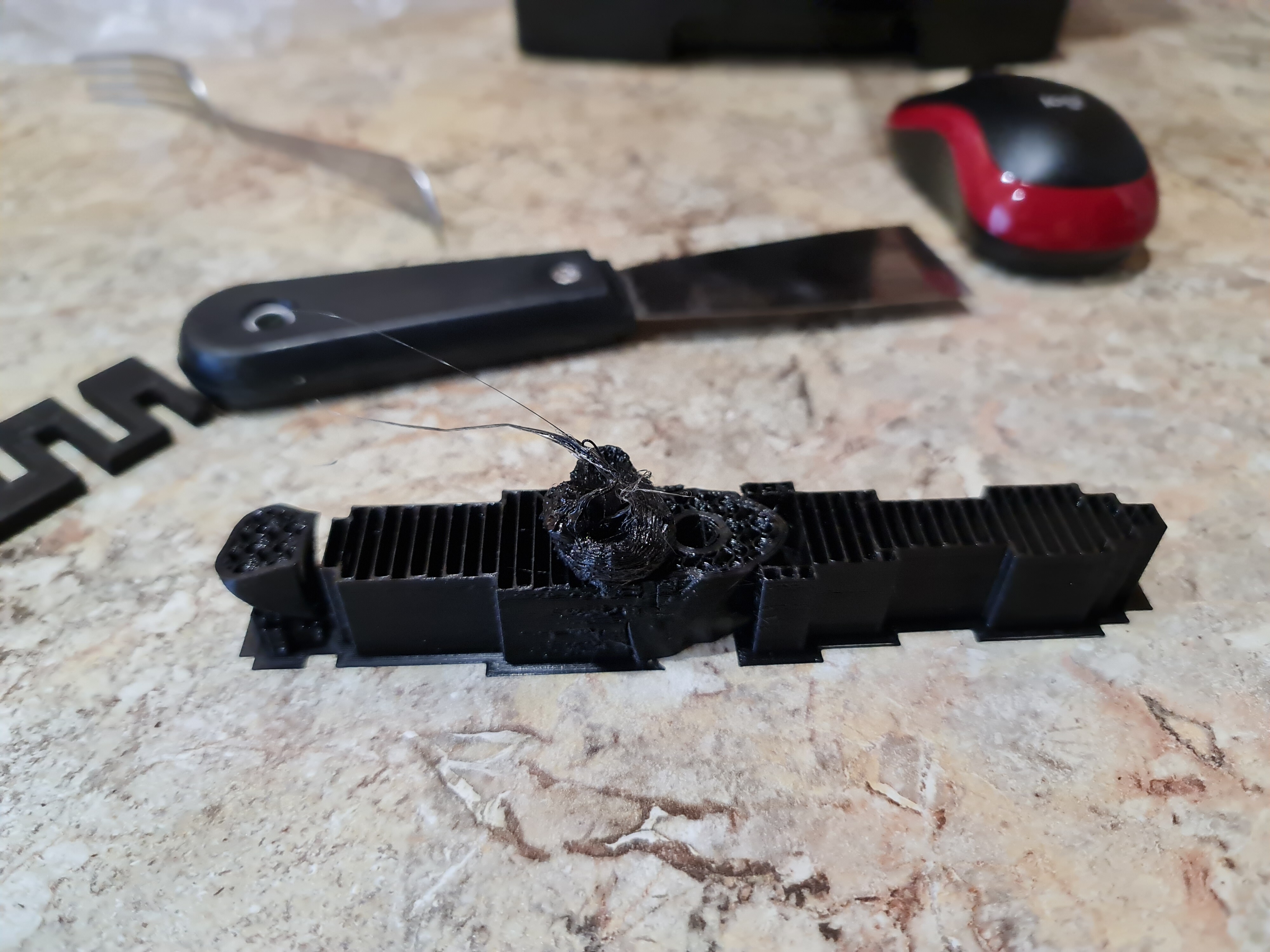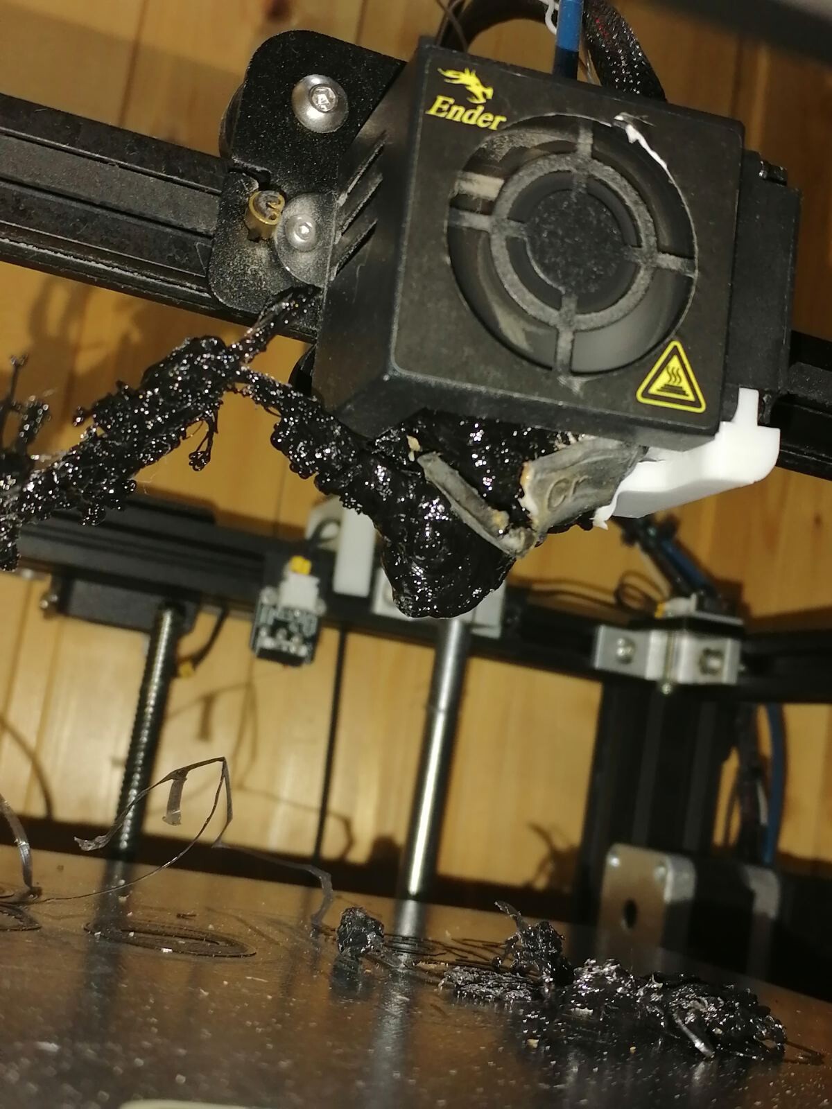 Все срезал, заменил сопло, пересобрал hotend. Но не помогло.