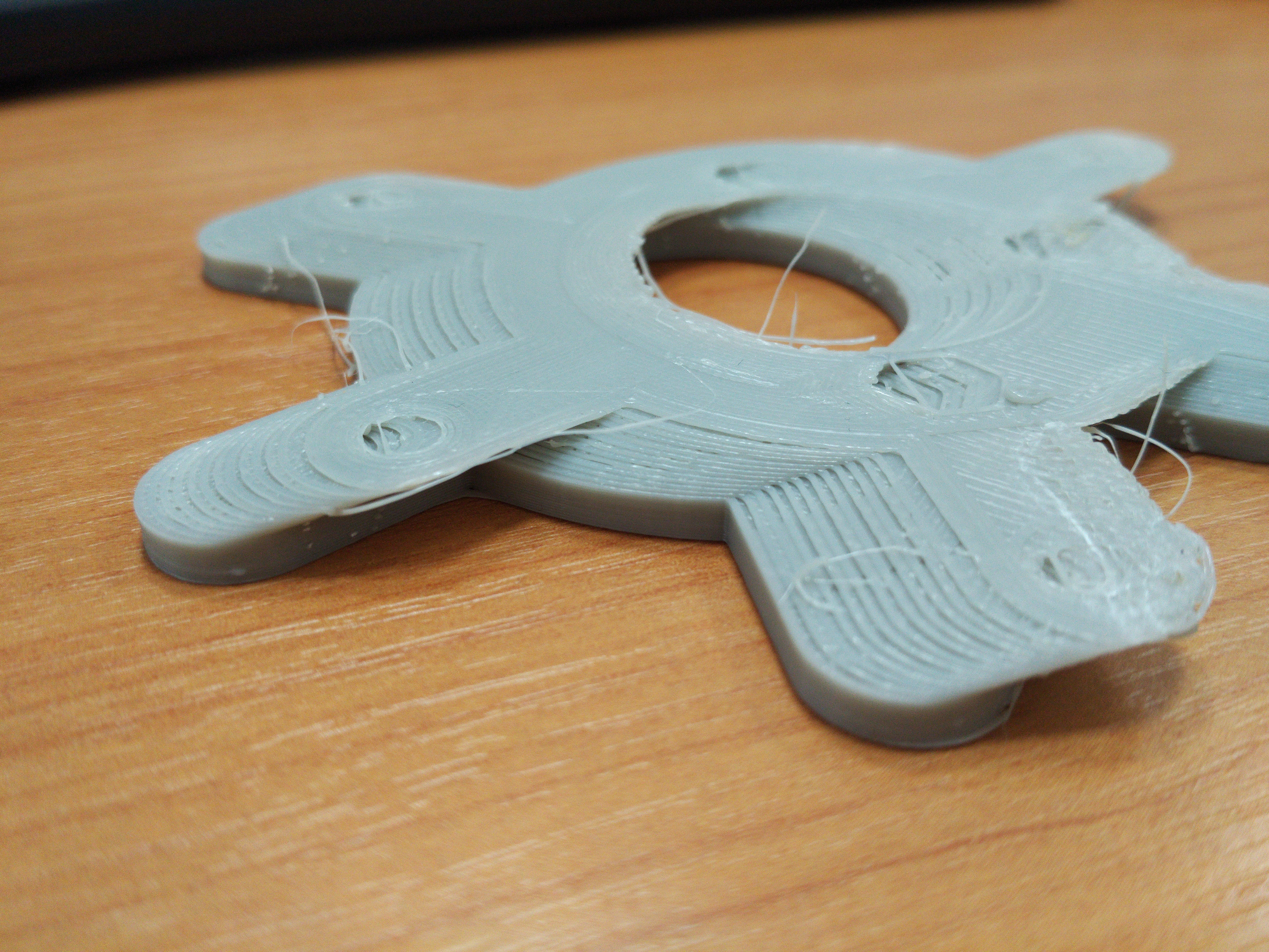 Доброго времени суток! Бьюсь уже 3 сутки над печатью одной и той же модели. Принтер P3Steell, хотенд e3d орига, толщина сопла 0.4мм, толщина слоя 0.24. Проверяли несколько раз натяжение ремней, ровность шпилек, усидчивости втулок ремня на валу двигателя. Выявили место в котором происходит проблема и вырезали gcode с проблемной печатью. При печати модель не задевает, да и вообще ни каких звуков при работе нет. На других моделях все отлично. Т. е. косяк либо в gcode, либо в прошивке marlin.Прикладываю сам gcode.