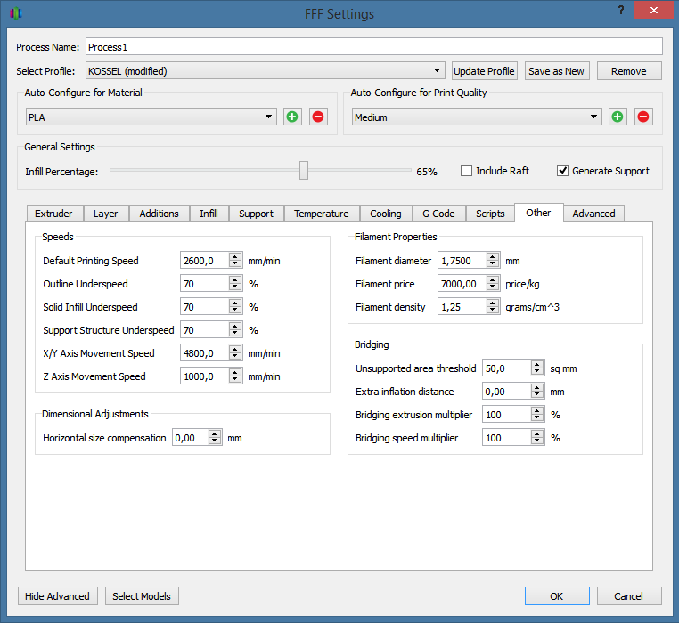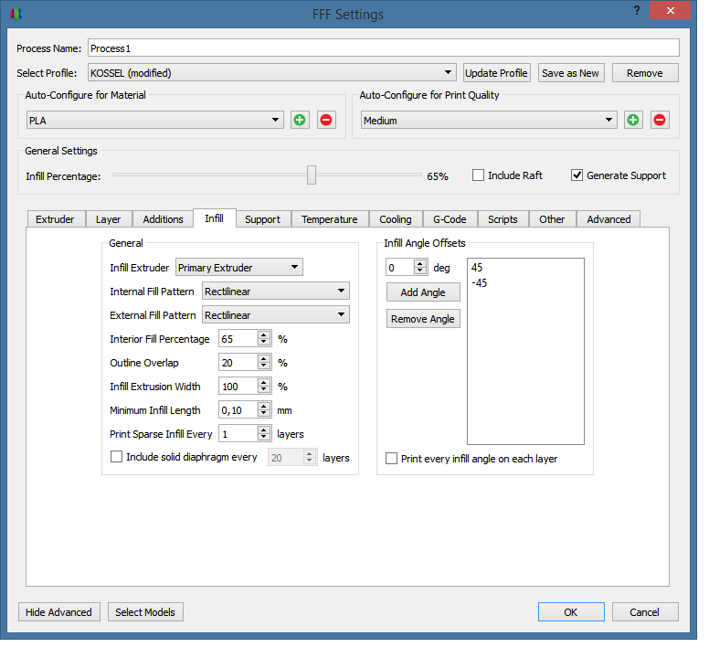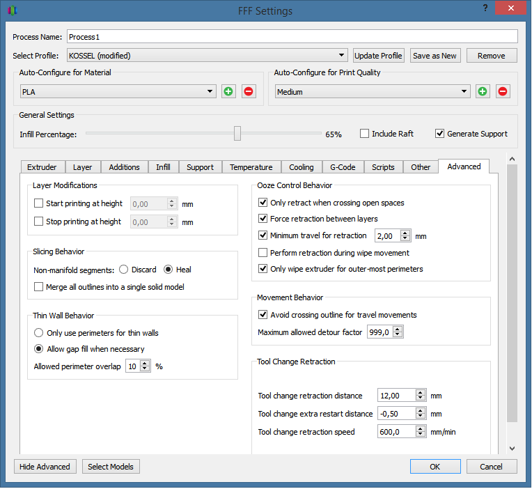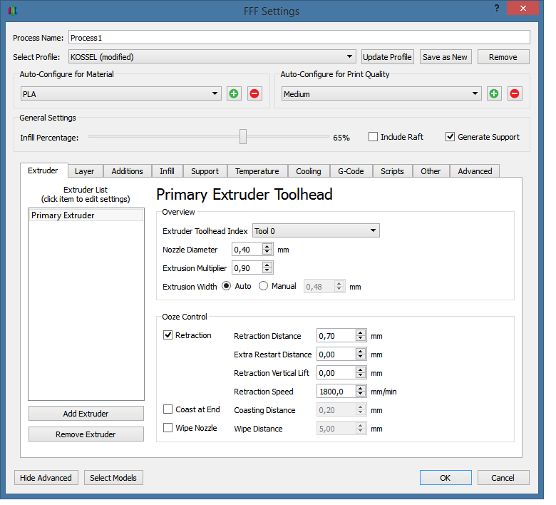 Настройки 'Retraction'