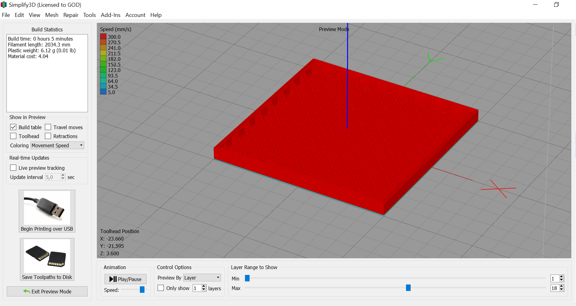 Слайсим на скорости 300 мм/с.Печатаем и получаем следующую картину.