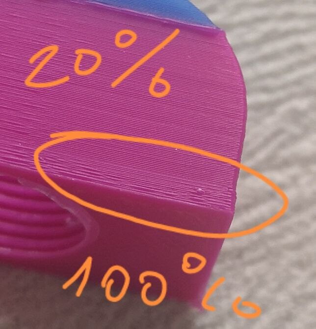 На слоях дна обнаруживаю постоянно подтёки и утолщения. Заметил, что это происходит только на слоях дна, где 100% заполнения, последующие слои, где уже заполнение 20-30%, я такого дефекта не наблюдаю.