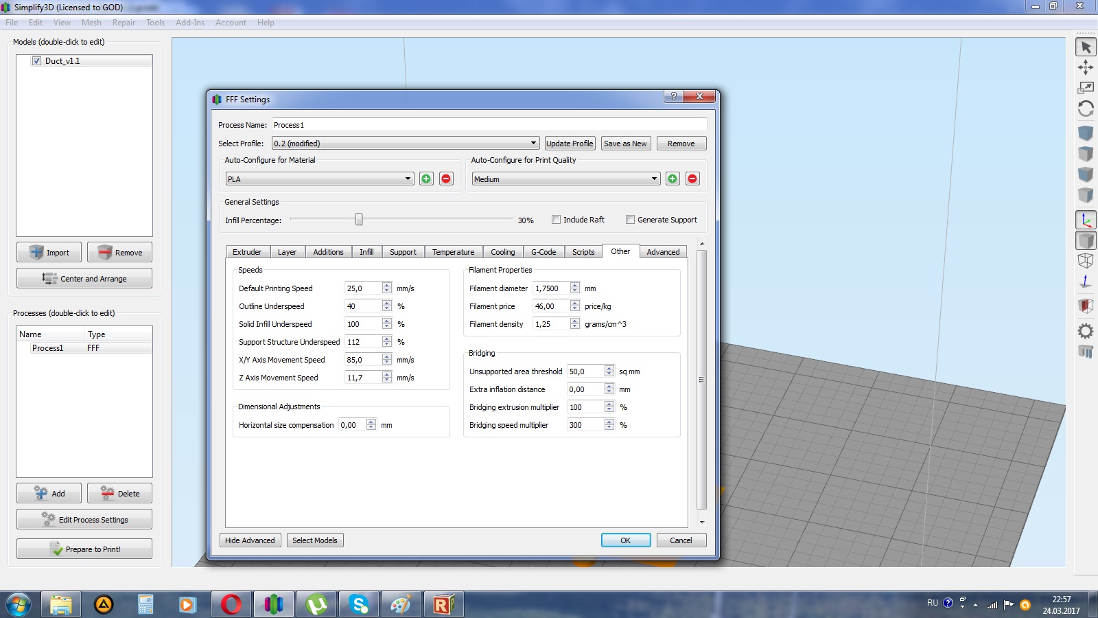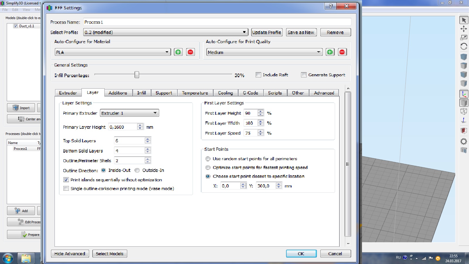 Настройки:Температура 205 пла бестфилансмент стол 65 обдув полукруг 90