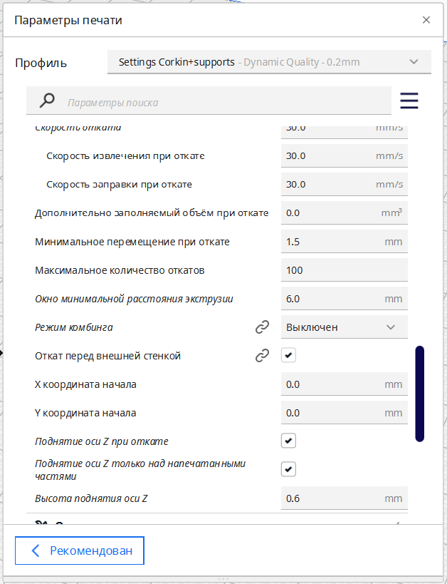 Решил проверить может из-за ретракта - убрал, стало хуже(фото нет, печатать до конца не стал). Вернул, сделал больше (с 2мм до 3мм увеличил), поменял процент экструзии и стал наблюдать: при перемещении сопла с подъемом остаются сталактиты. Сейчас пользуюсь Курой 5.3.0Подскажите с чем это связано? Пользуюсь пластиком от эндера (EN-PLA)Мои настройки последней печати с сталактитами: Температура сопла 200 (печать первого слоя 210)Стол 60Поток 90Поток внешней/внут. стенки 90поток для заполнения 93Поток первого слоя 95Откат 3ммСкорость всех откатов 30мм/сДоп заполняемый объем 0 мм кубмин перемещ при откате 1,5 ммМакс кол-во откатов 100Окно мин растояния экструзии 6ммвысота поднятия оси z 0,6мм