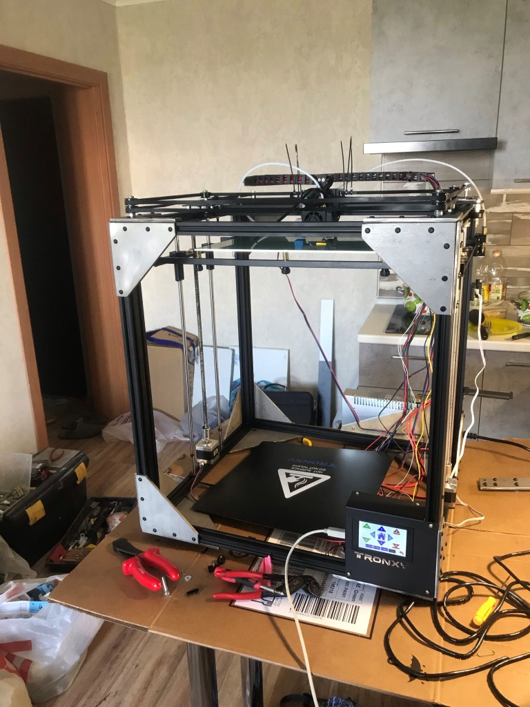 Игрушка называется Tronxy X5SA мудифицированный, в обвесе 'Терминатор'Механику мы собрали быстро, там ни чего сложного, ну кроме моего маниакального стемления сделать все ровно